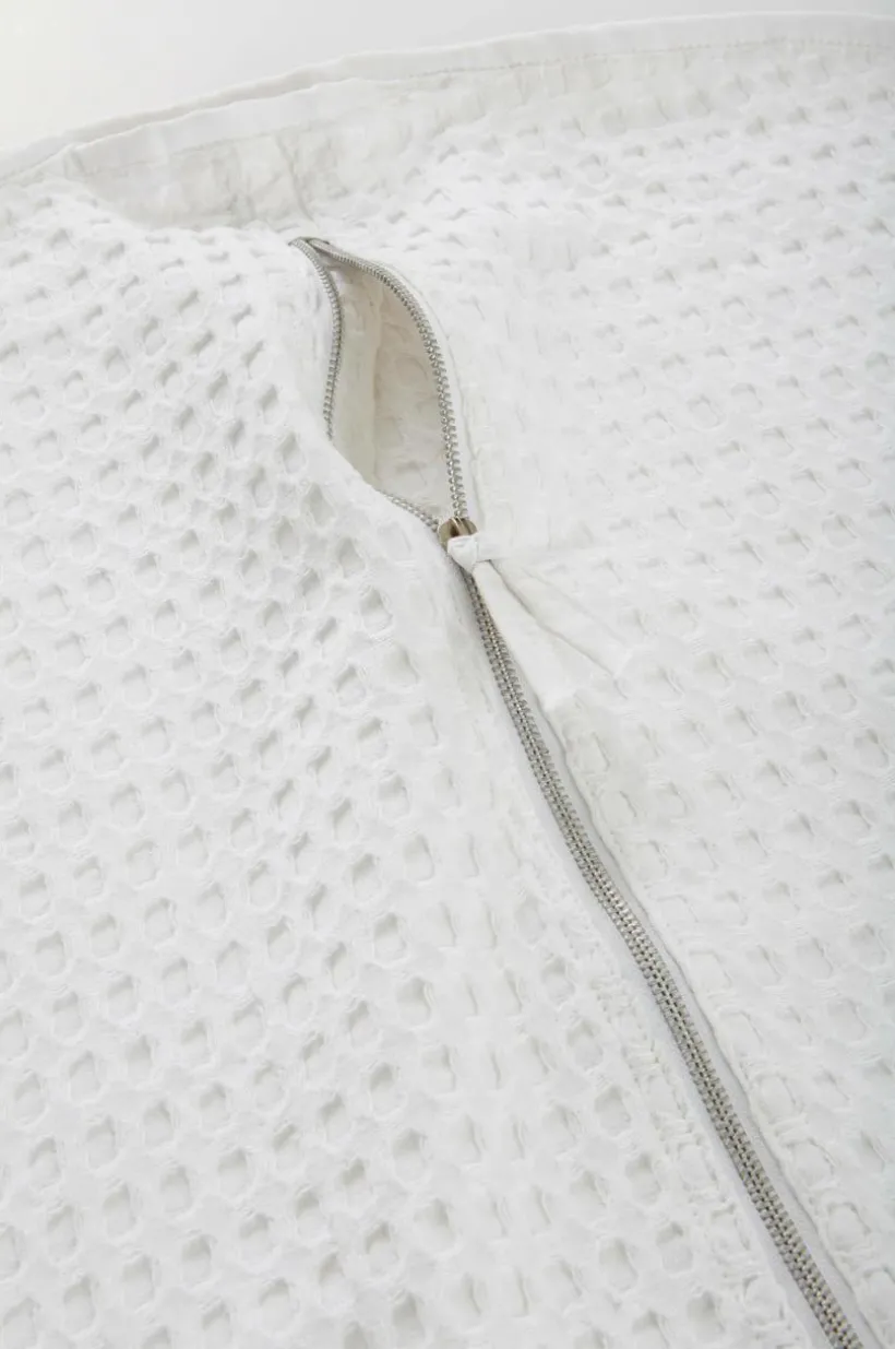Resegarderob av bomull med vävd våffelstruktur. Resegarderoben har metalldragkedja fram och öppning upptill där du trär igenom galgen som du hängt till exempel kavajen eller blusen på och sedan hänger du det skyddat på klädstången eller i bilen. Resegarderoben är mycket användbar och skyddar dina kläder på resan och även hemma.