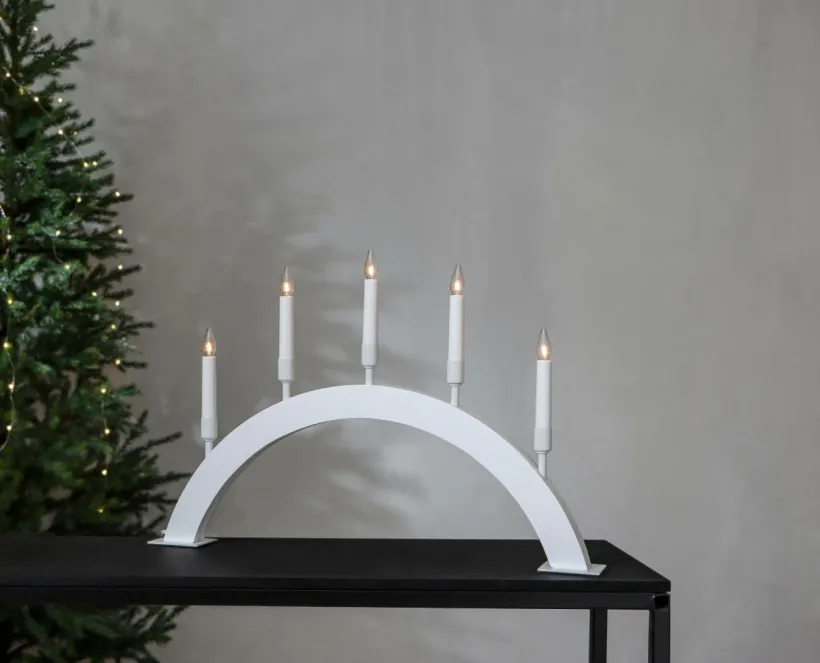 En väldigt fin och stämningsfull adventsljusstake. Svart betsad träbas i forma av en båge med upphöjda ljuskoppar, ger ett elegant och enkel uttryck till både hemmet och den offentliga miljön. Sprider ett behagligt ljus med sin 7 ljuskällor. Placera i ett fönster eller på en skänk för att få en härlig julkänsla.