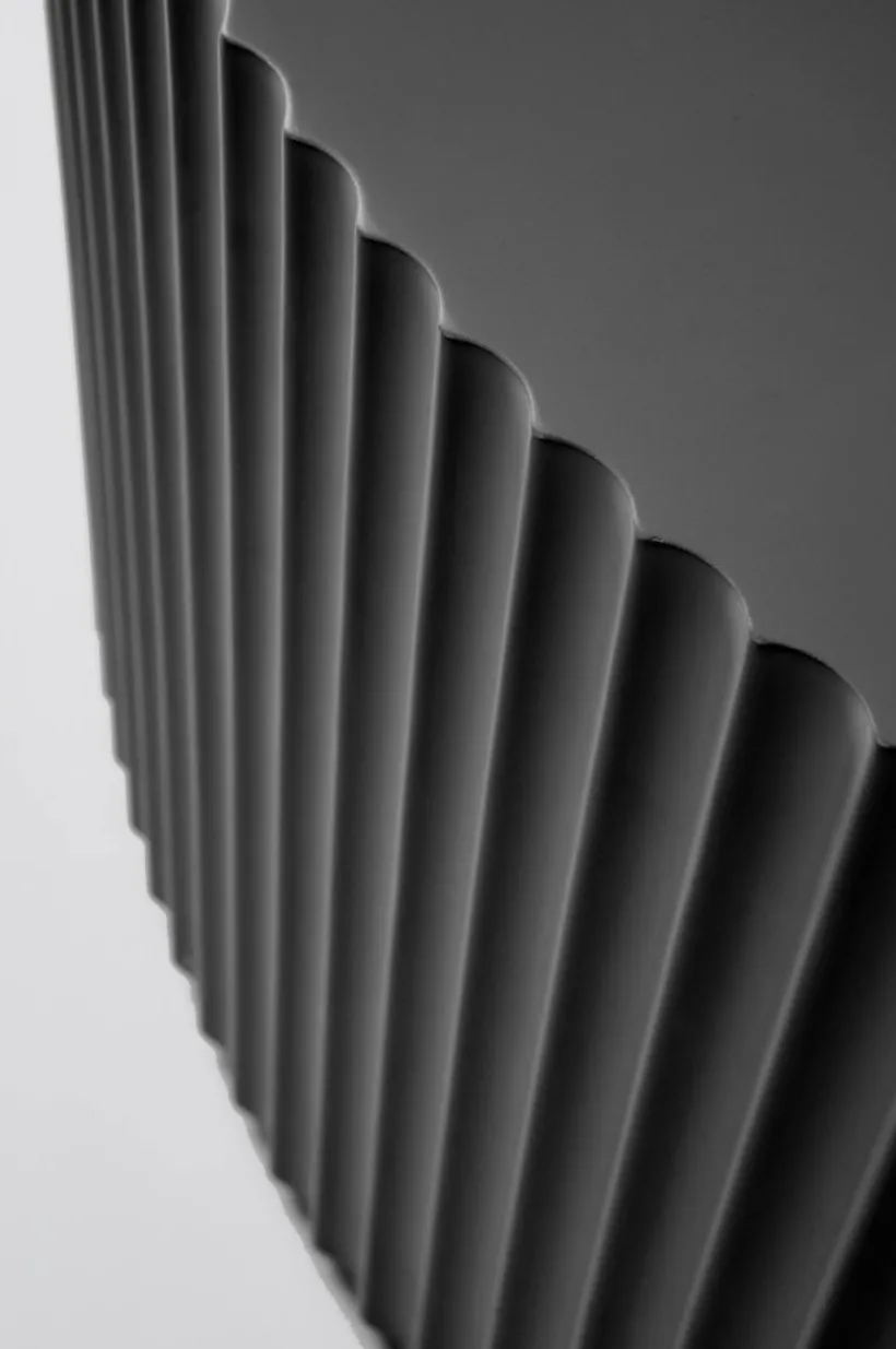 Runt soffbord av FSC-märkt MDF som lackerats med matt färg. Bordsskivan är slät medan sidan är räfflad runt om hela bordet.