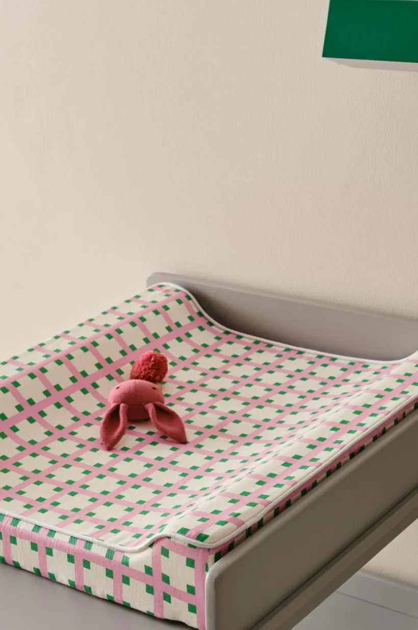 LENI skötbädd är perfekt för barn i åldern 0-24 månader. Det mönstrade överdraget är tillverkat av mjuk bomull och har en vattentät beläggning. Överdraget är avtagbart och kan handtvättas. Med måtten 10 cm på den högsta punkten och 5 cm på den lägsta erbjuder den en mysig och bekväm plats för blöjbyten. Inred din barnkammare eller ditt badrum med denna moderna och funktionella möbel.