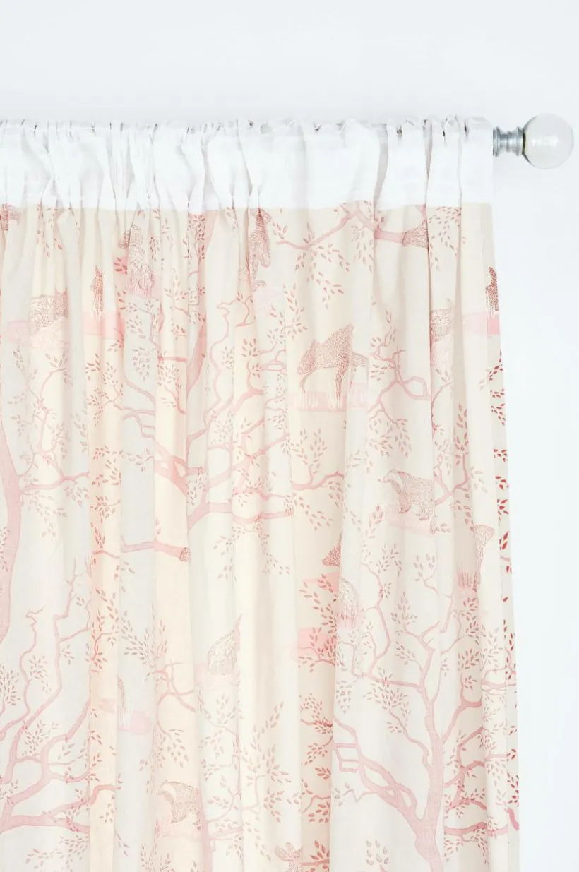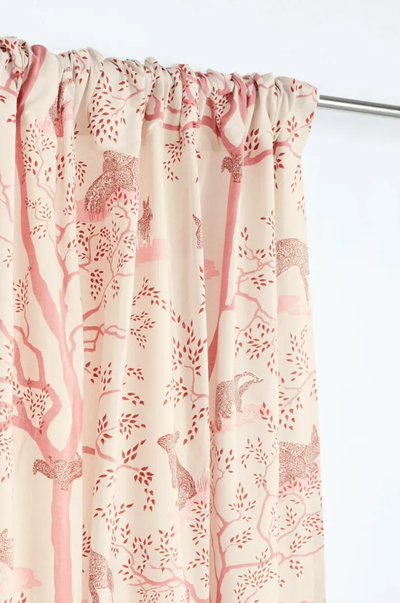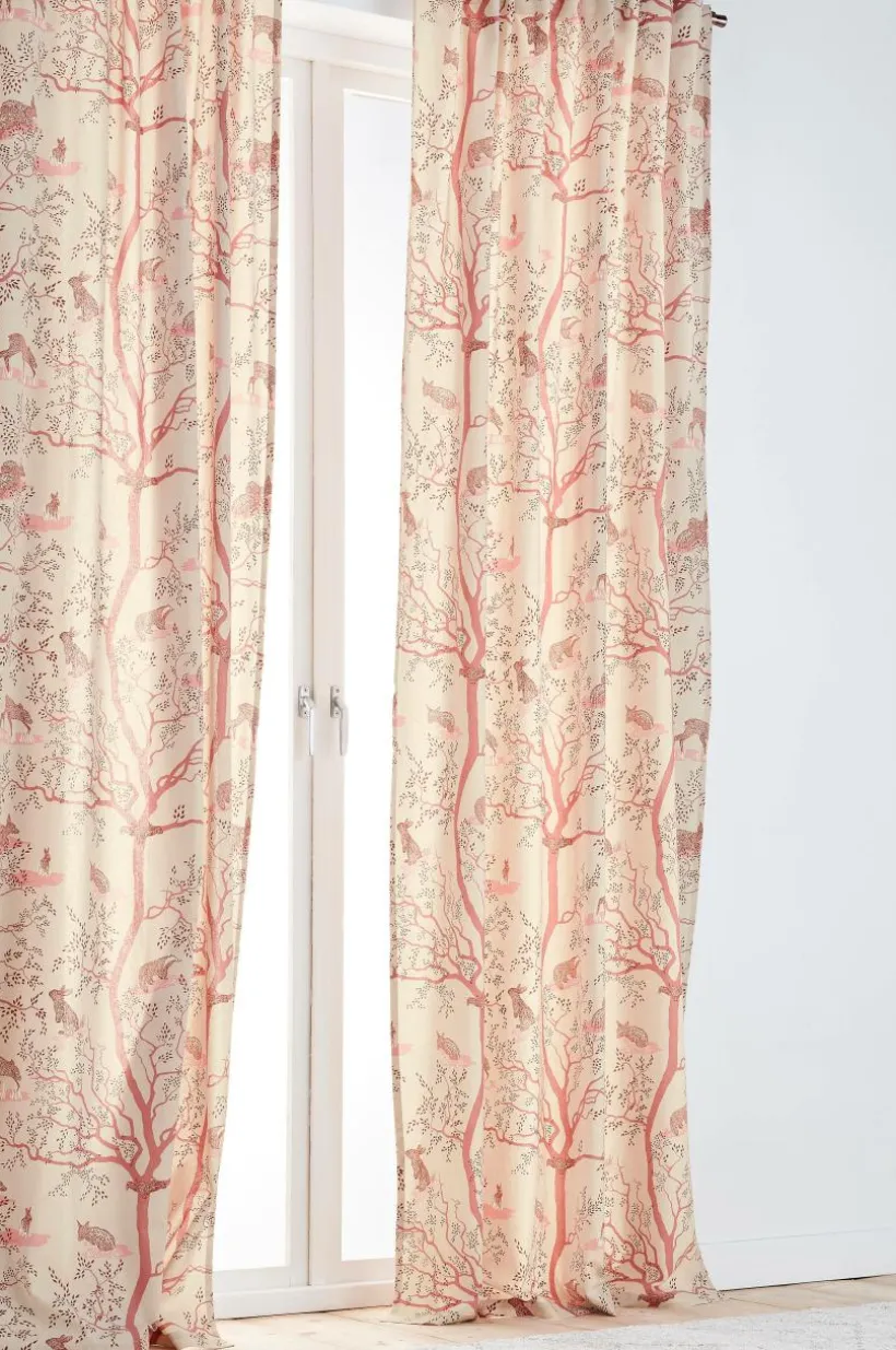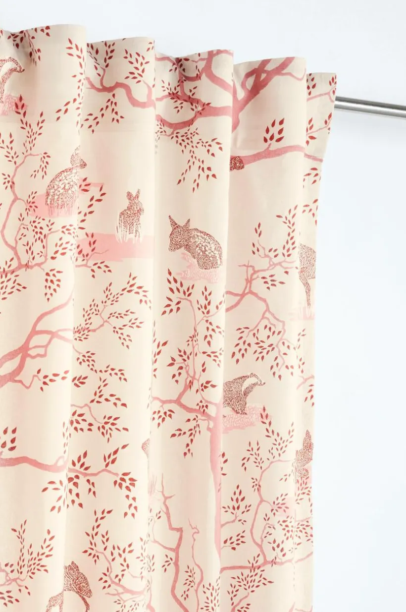 2-pack gardinlängder i bomull med tryckt mönster och mjuk yta. Med påsytt multifunktionsband. Gardinen kan hängas upp med fingerkrokar, kanal samt dold hälla.