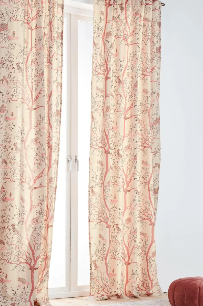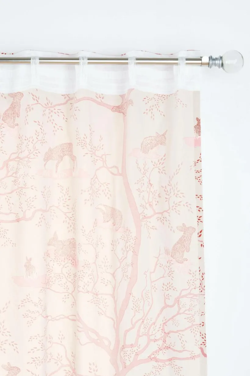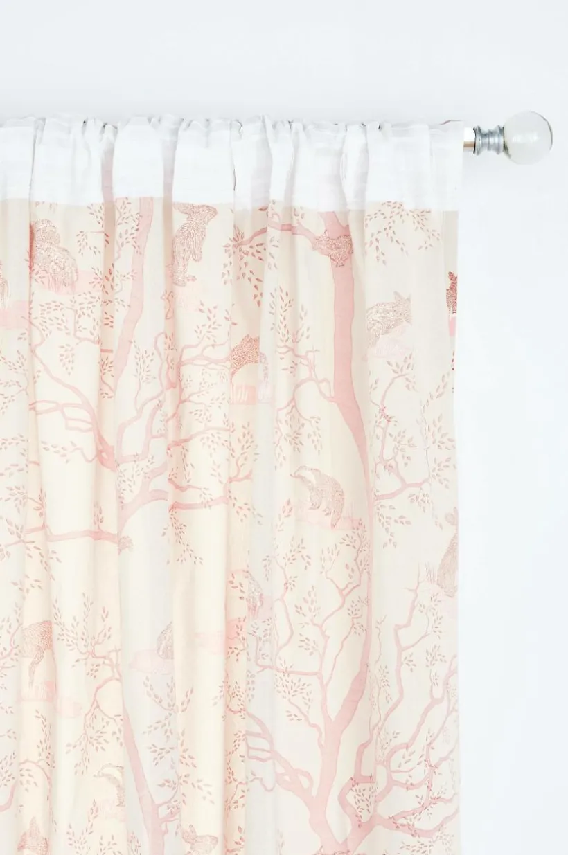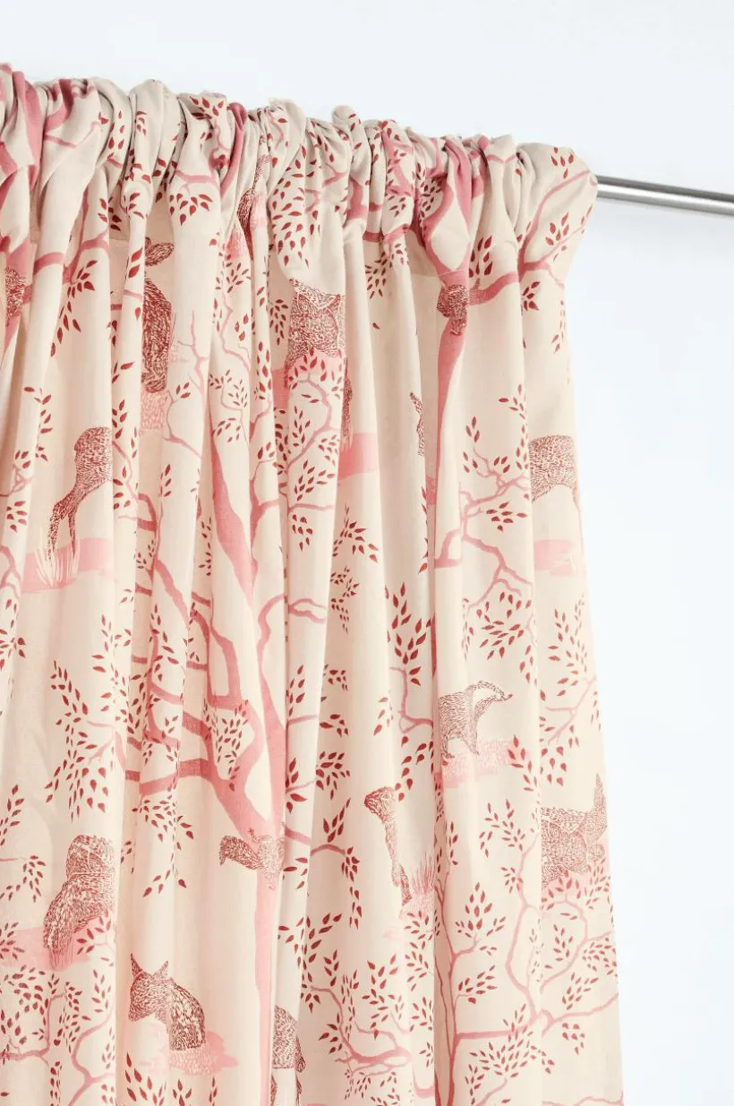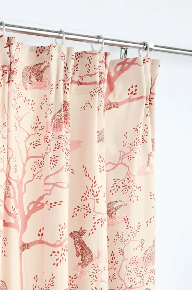2-pack gardinlängder i bomull med tryckt mönster och mjuk yta. Med påsytt multifunktionsband. Gardinen kan hängas upp med fingerkrokar, kanal samt dold hälla.