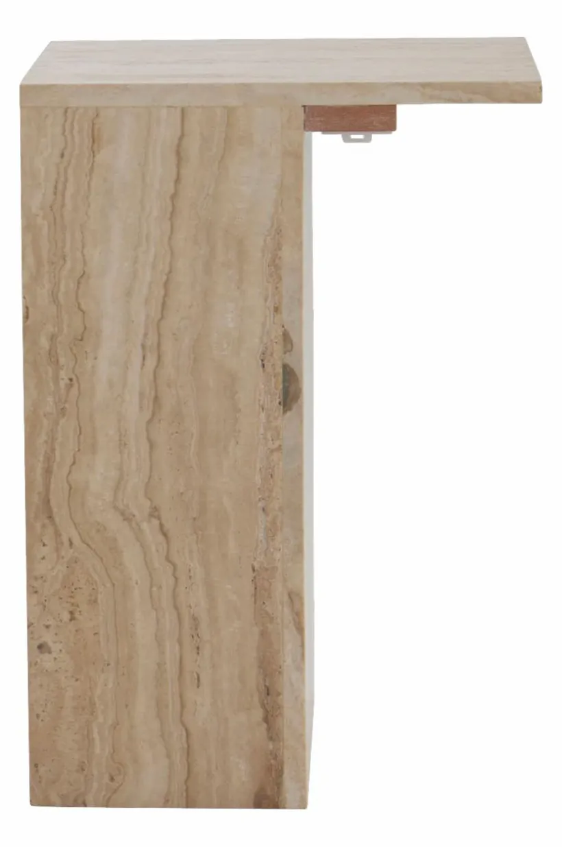 MELETO sängbord är tillverkat av fin travertin, med naturlig marmorering och unikt mönster. Små avvikelser i färg och textur bidrar till dess charm. En hylla på höger sida erbjuder praktisk förvaring. Placeras bäst på vänster sida av sängen. Mångsidig användning som sidobord i vardagsrummet. Inkluderar tippskydd för extra säkerhet. Förhöj ditt sovrum med MELETOs eleganta hantverk.