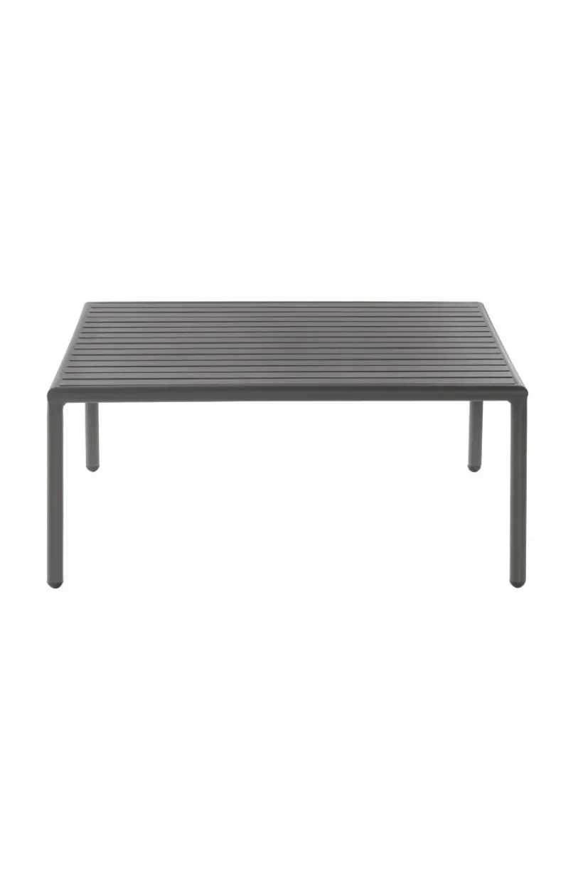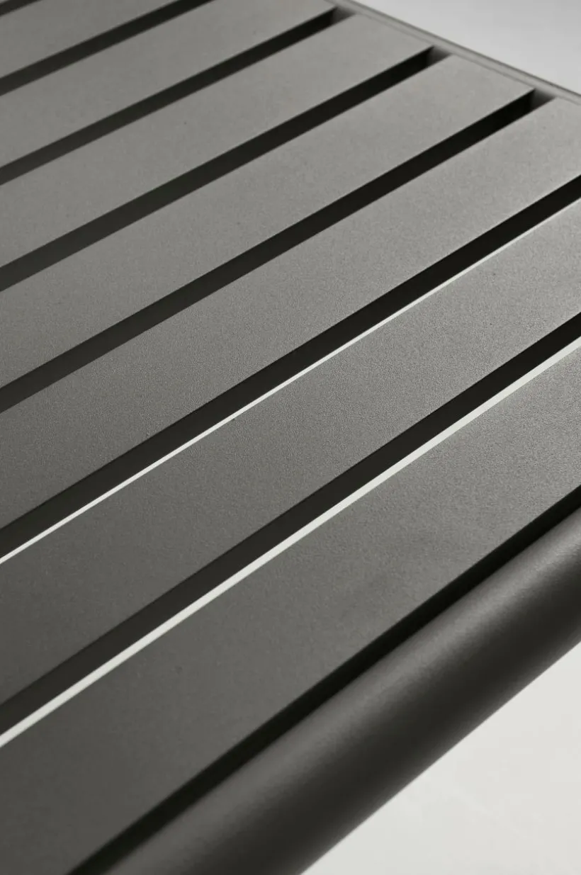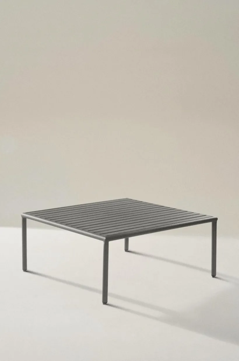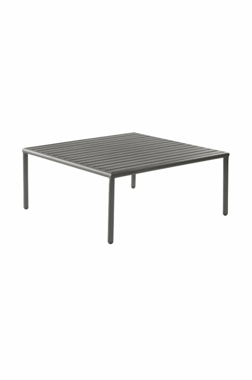 Soffbord av pulverlackerad aluminium med matt yta som inte bländar i solskenet. MENTON tål att stå utomhus och det gör utelivet enklare. Du slipper bära så fort du vill sitta ute. Möbeln är nätt och ger rätt loungekänsla. .