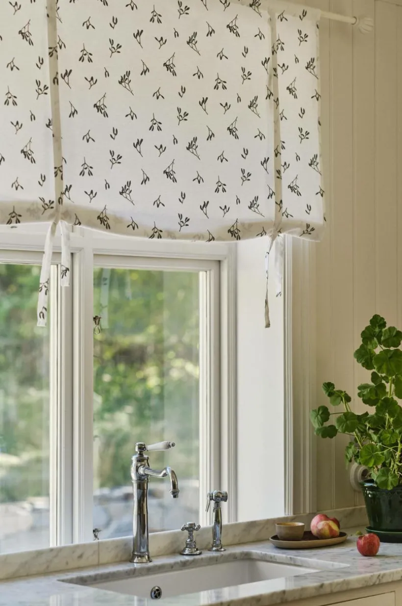 MISSY rullgardin tillverkad av mjuk bomull och linne. MISSY har ett fint pigmenttryck på vit bakgrund. Gardinen är tvättad för extra mjukhet och ger en mysig charm året runt, samtidigt som den också ger en krispig julkänsla. Rullgardinen kan enkelt justeras efter dina preferenser för transparens. Hängs på en vanlig gardinstång. Höjden regleras med band.