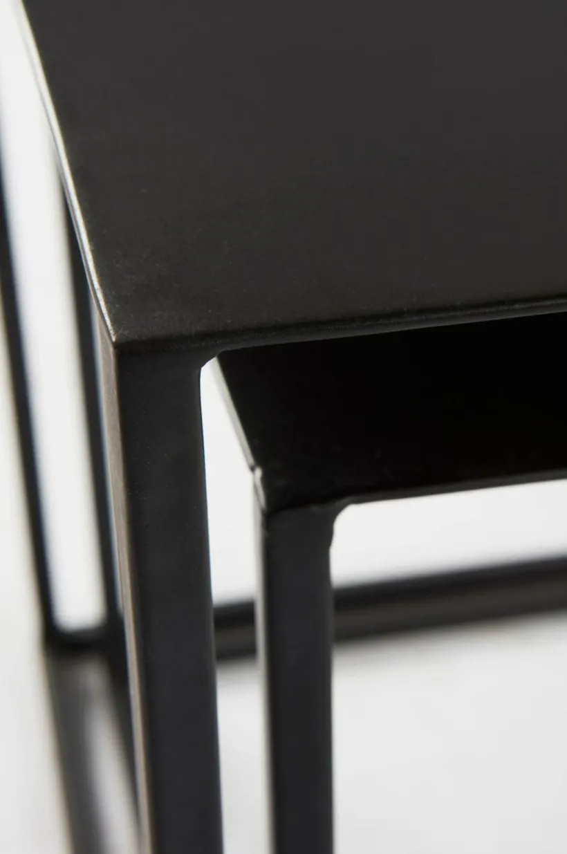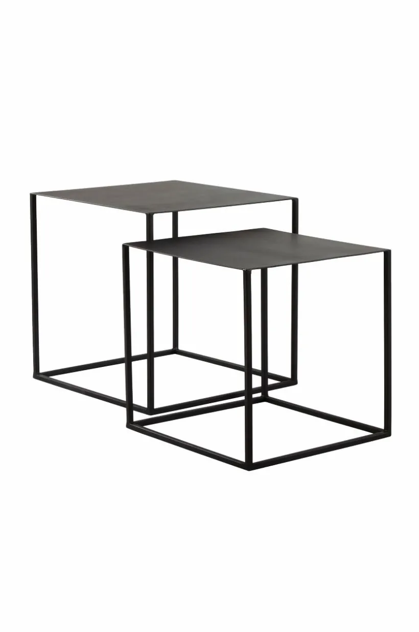 2-pack kubformade sidobord helt av järn i enkel och rak modell. De passar lika bra i en lite ruff, industriell stil som i den mer sofistikerade eller romantiska. Lätt att placera och lätt att möblera. Om utrymmet i rummet inte räcker till kan du placera det lilla bordet under det lite större. Borden kan även placeras i olika rum och flexibiliteten ger dig frihet i din möblering.