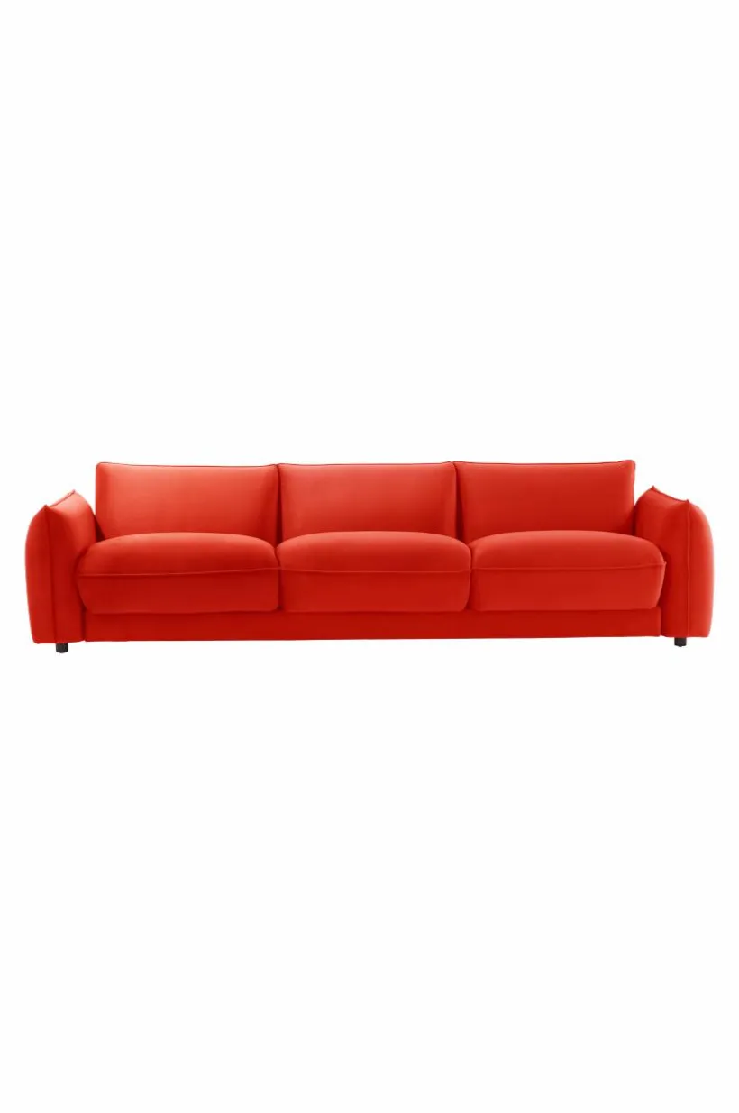 Rymlig 3-sitssoffa med stora, fylliga plymåer och mjuka, fina former. Designen är både attraktiv och avslappnad med runda former och mjuk sammetsklädsel av återvunnet material. Soffan har stabil stomme av furu och plywood. Sittdelen är uppbyggd av kallskum och zickzackfjädring vilket ger god sittkomfort, MOLTON är en soffa som är perfekt när det är dags att träffa vänner, kanske lite sällskapsspel på gång?