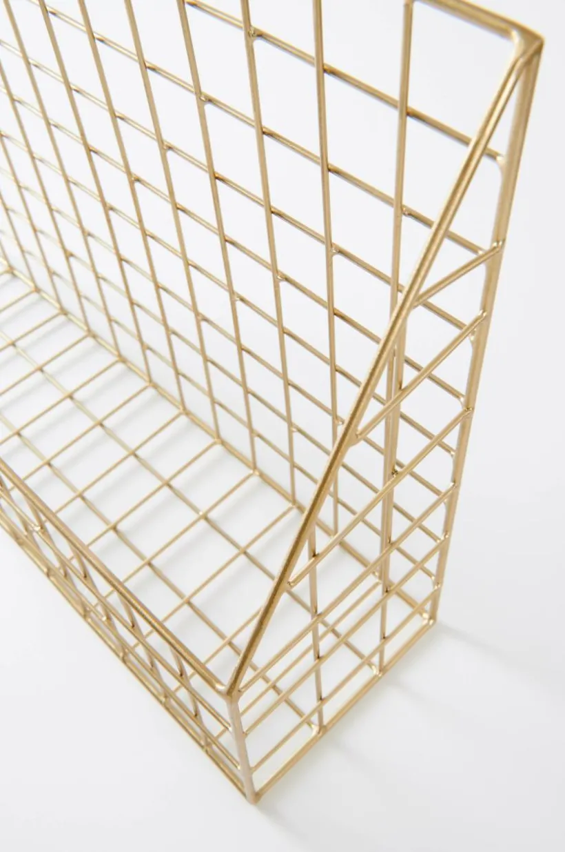 Dekorativ vägghylla av järn med målad metalltråd. Hyllan har hål för upphängning och förvarar dina saker snyggt och prydligt.