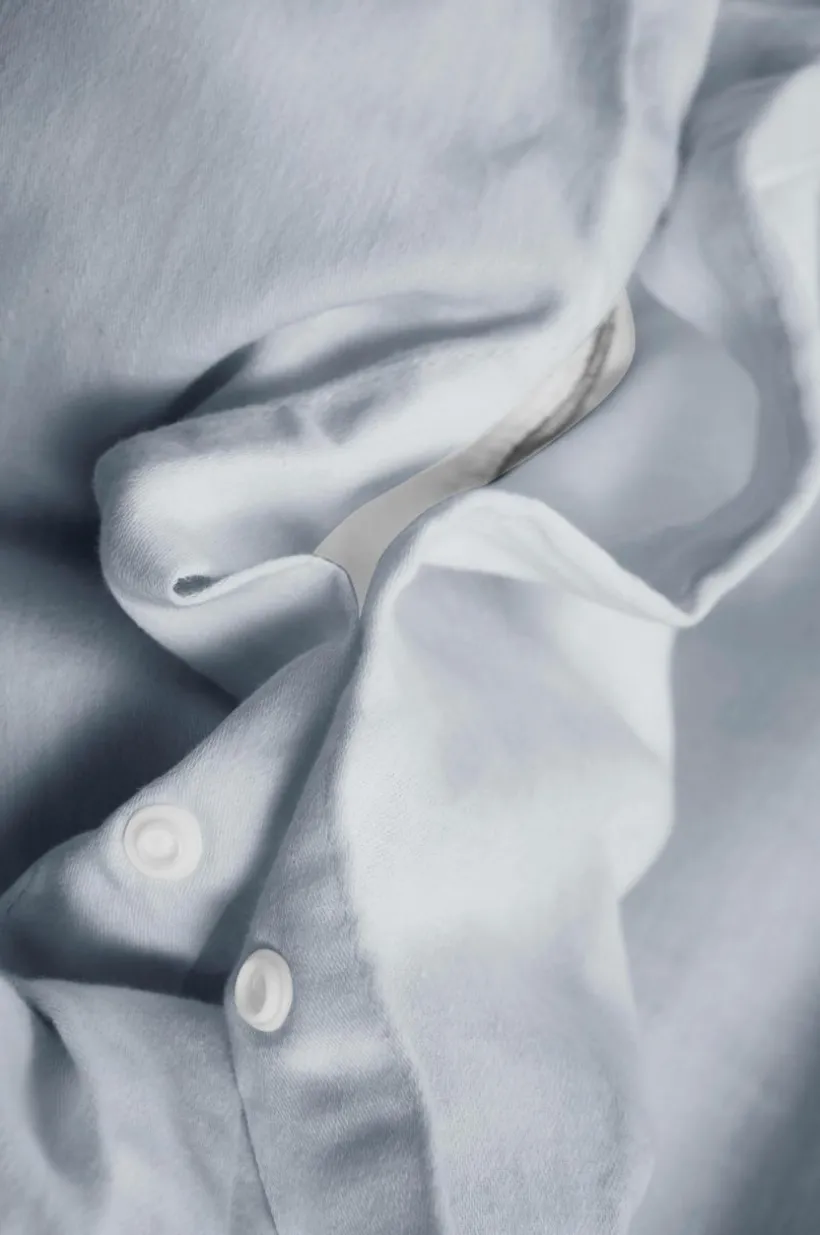 Enfärgat påslakanset i 2 delar av behaglig bomullssatin. Satin är en vävteknik som ger ett underbart slätt, mjukt och lent tyg. Bomull som vävs med denna teknik ger ett tyg med fin lyster och lyxig känsla. Påslakansetet är dessutom tvättat för att bli extra mjukt och följsamt. Dolda tryckknappar av plast för tillslutning på påslakanet. Trådtäthet på 200 tc. (Trådtätheten talar om antalet trådar, thread counts, per kvadrattum i ett tyg. Ju högre trådtäthet desto högre kvalité.)