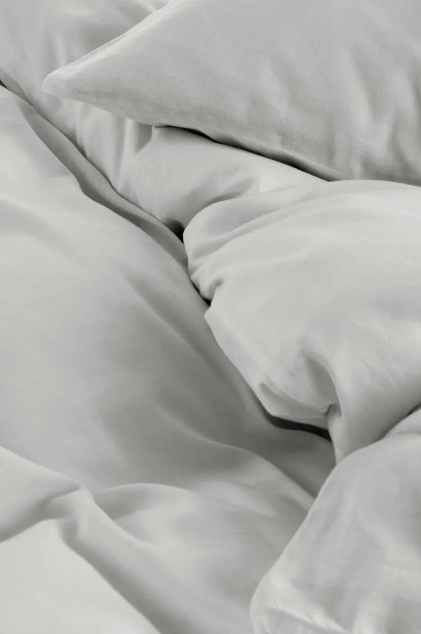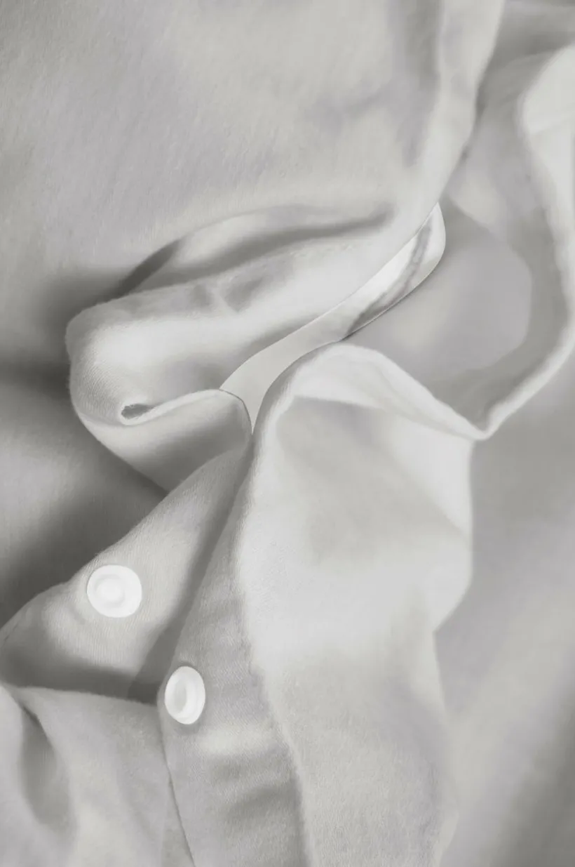 Enfärgat påslakanset i 2 delar av behaglig bomullssatin. Satin är en vävteknik som ger ett underbart slätt, mjukt och lent tyg. Bomull som vävs med denna teknik ger ett tyg med fin lyster och lyxig känsla. Påslakansetet är dessutom tvättat för att bli extra mjukt och följsamt. Dolda tryckknappar av plast för tillslutning på påslakanet. Trådtäthet på 200 tc. (Trådtätheten talar om antalet trådar, thread counts, per kvadrattum i ett tyg. Ju högre trådtäthet desto högre kvalité.)