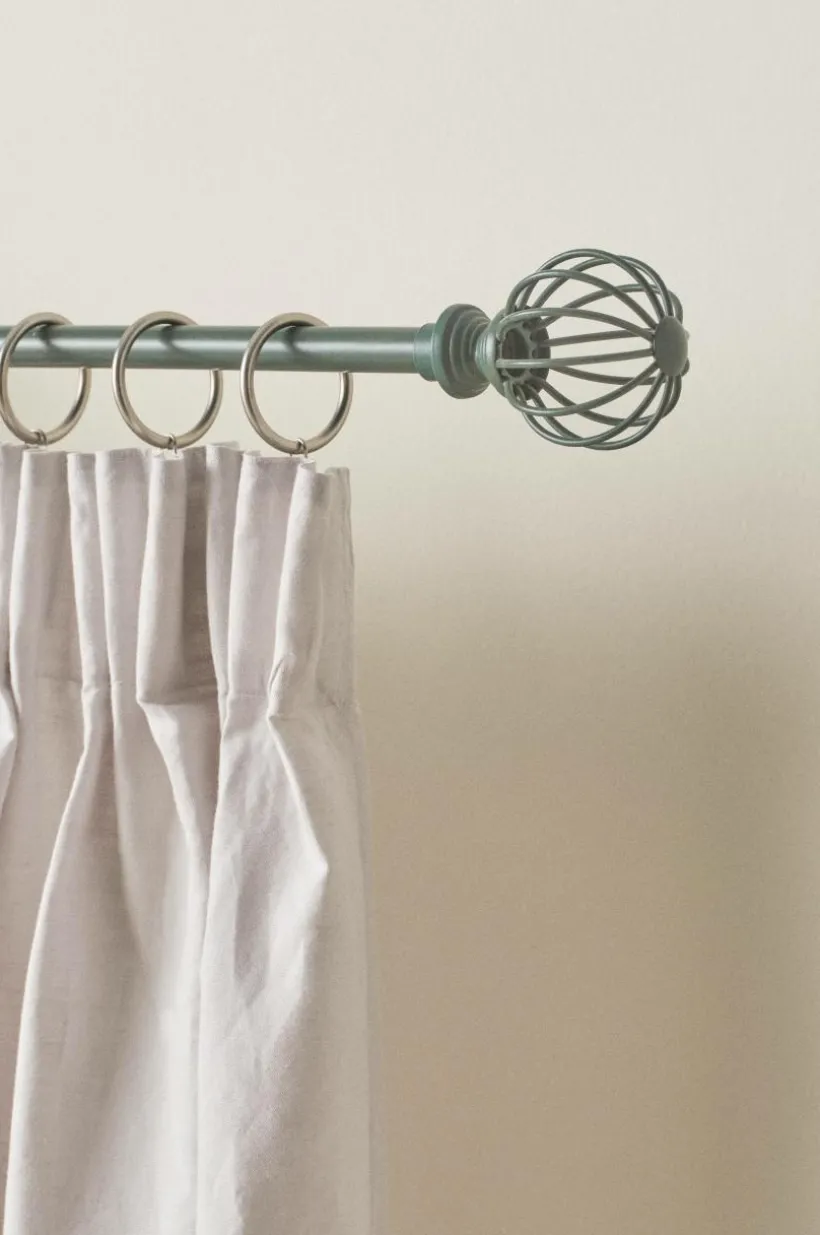 Gardinstång av järn och stål. NULA har en skir, luftig ändknopp i vardera änden, som ger ett nätt intryck. Knopparna skruvas på gardinstången. 3 väggfästen, plugg och skruvar ingår.