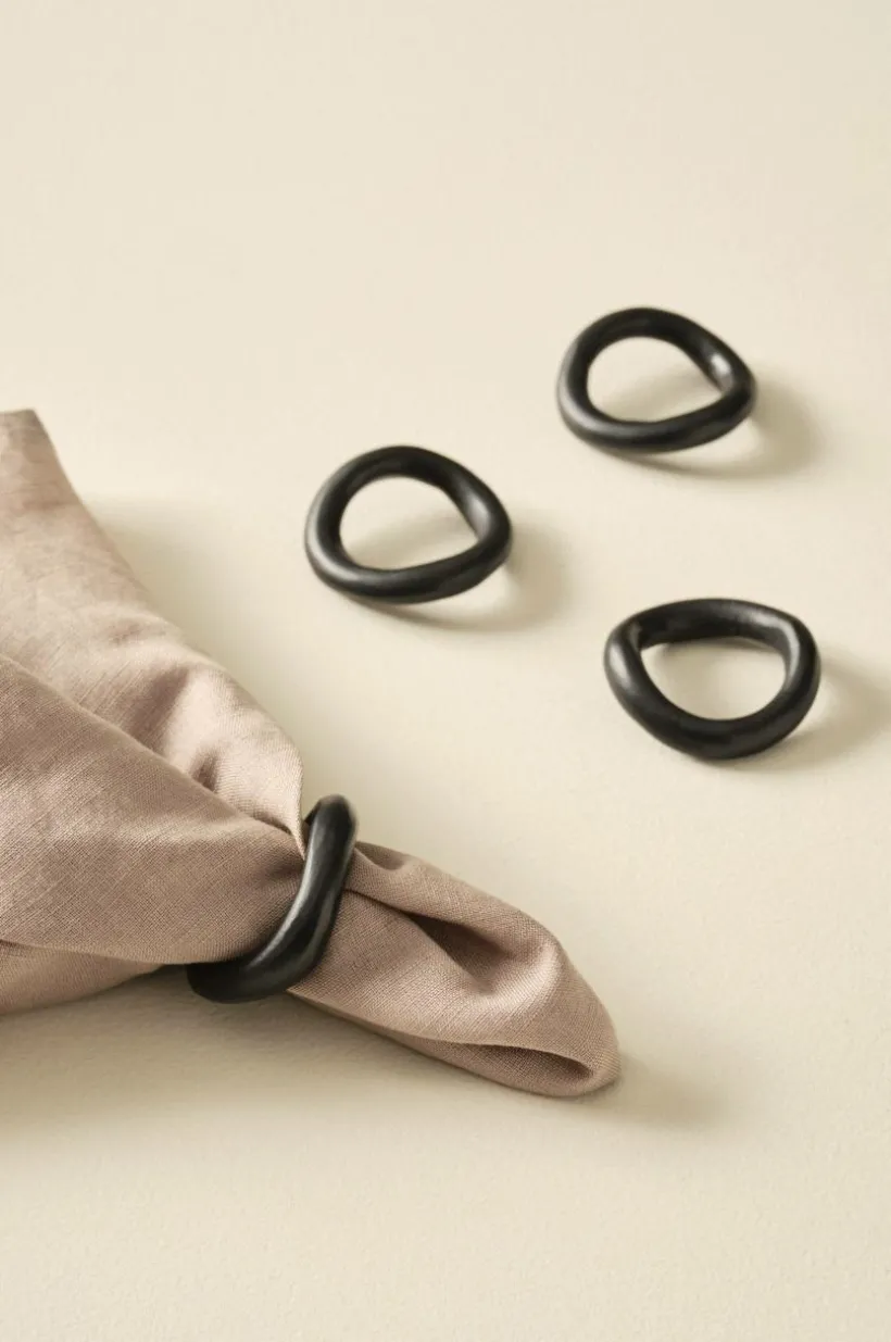 4-pack servettringar av aluminium. De organsikt och oregelbundet formade ringarna ger din dukning med textilservetter en mjuk känsla. Färgen är pulverlackerad och har matt yta.
