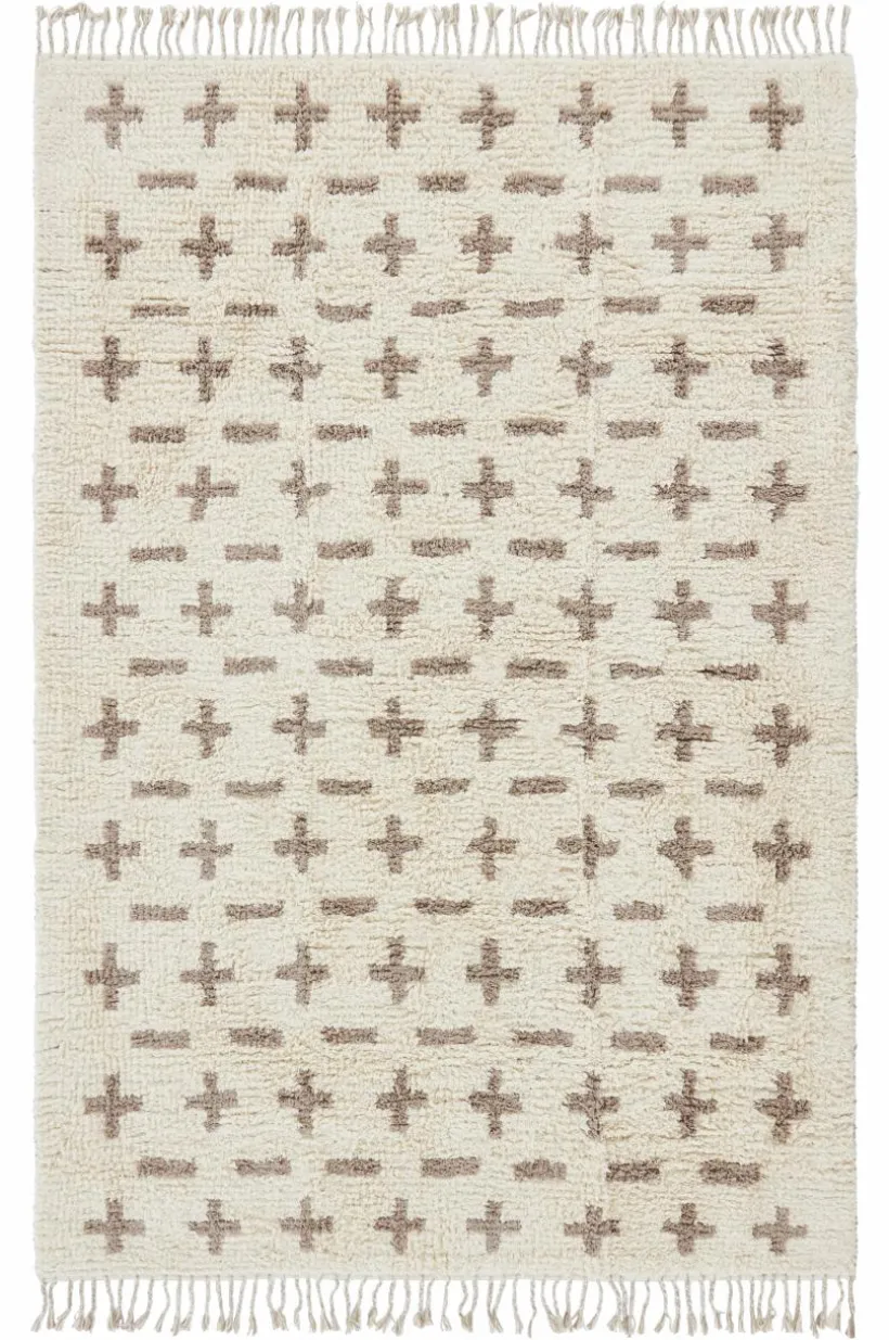 Mönstrad matta av bomull med dekorativa fransar. PILL är en mjuk, mysig matta som är handvävd. Det effektfulla mönstret ger en fin känsla utan att ta över rummet. Franslängd 9 cm. Tjocklek 2,5 cm. 1800 g/m².