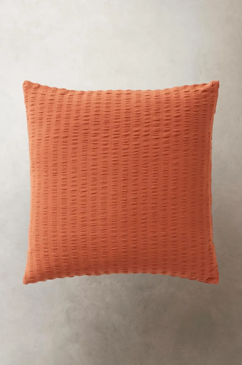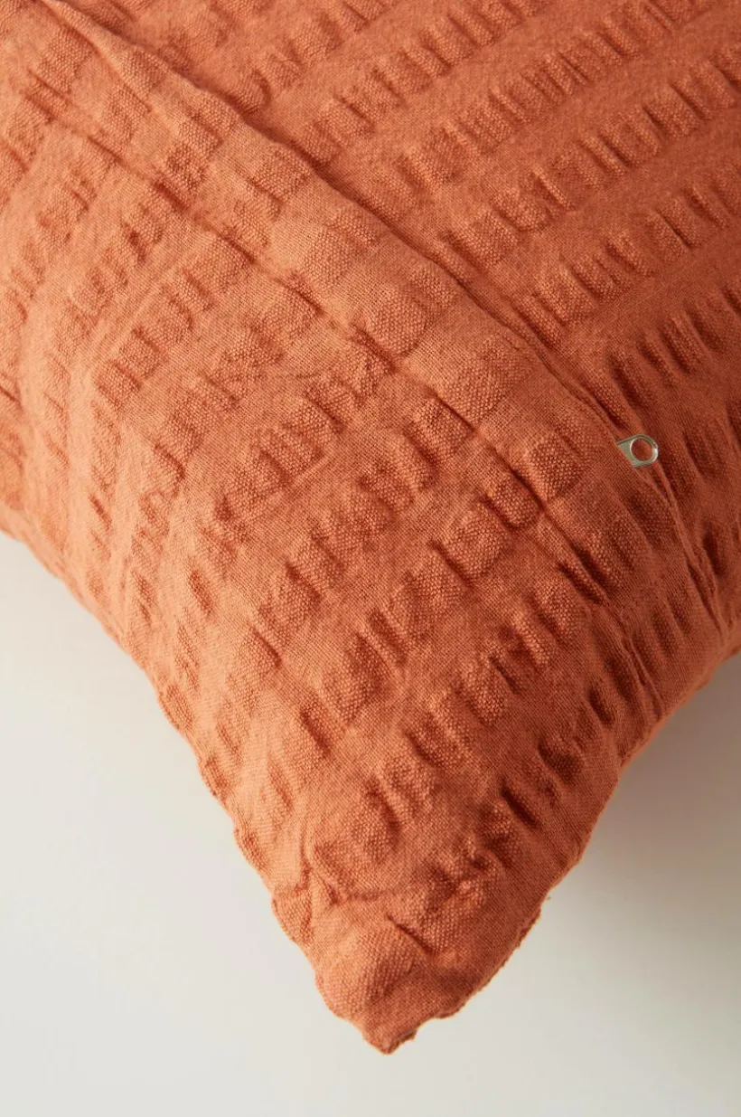 1-pack kuddfodral av bomull vävd med bäckebölja-teknik som ger randmönster ton i ton. Tyget är enfärgat och varannan rand är bubblig, varannan rand är slät. Dold dragkedja på baksidan.