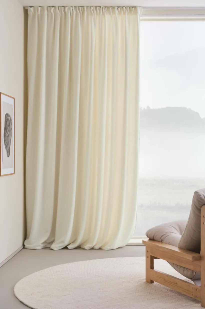 Gardinen SANDY i bouclé-tyg har en lyxig känsla och en fantastisk struktur. Det multifunktionella bandet ger mångsidiga upphängningsmöjligheter. Den extra breda designen gör den perfekt för stora fönster och ger elegans till alla rum. Förvandla ditt rum med detta eleganta och moderna heminredningstillbehör.