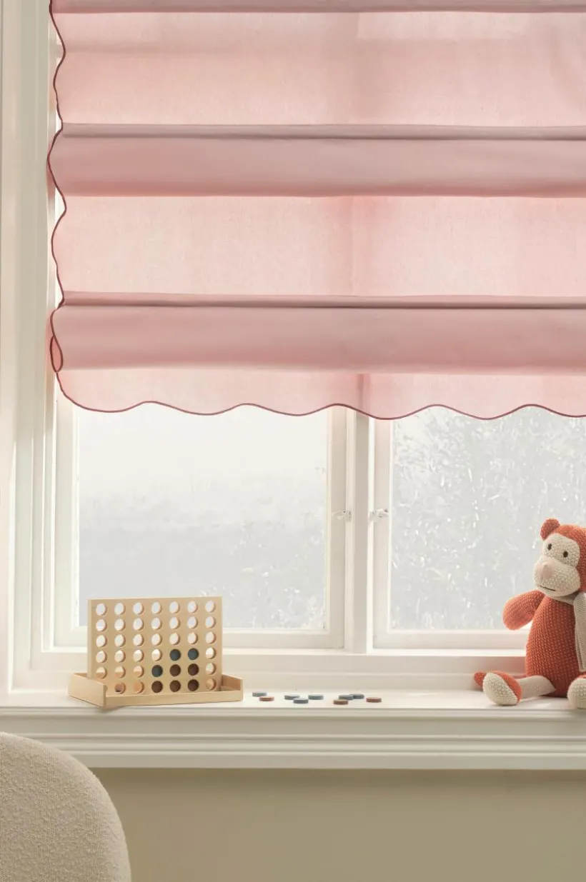 Charmig gardin i slät bomull som fascinerar med sin vackra vågkant. Gardinen är perfekt för barnrum och gör fönstren roligare och finurligare. Dessa rullgardiner har en smart höjdregleringsfunktion tack vare de medföljande magneterna på sidorna. Hängs enkelt på en vanlig gardinstång.