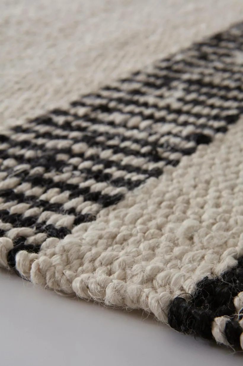 Handvävd matta av jute. Mattan är enfärgad med mönstervävda bårder längs kortsidorna. Jute är ett rustikt naturmaterial. En handgjord matta är ett fint hantverk och varje matta är unik. Tjocklek 0,9-1 cm. 2800-3000 g/m².