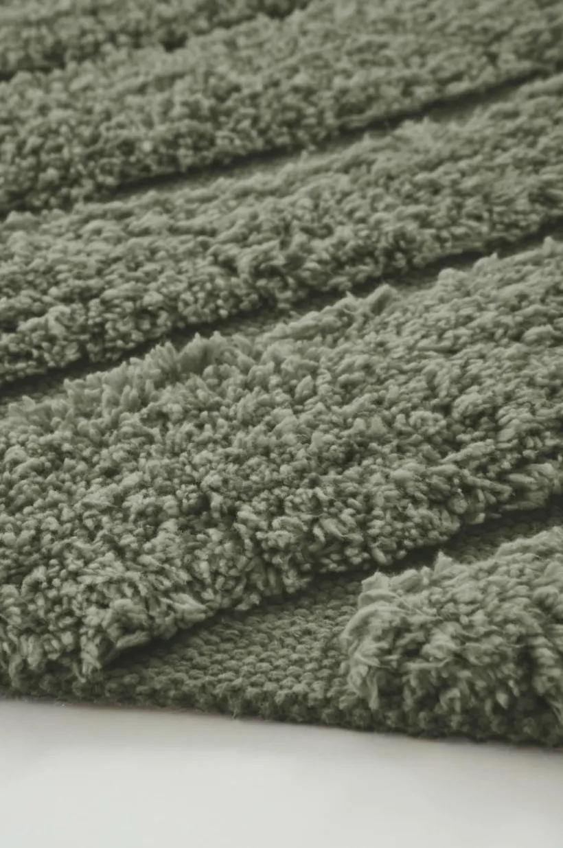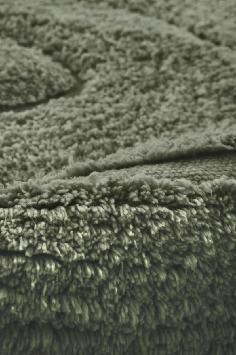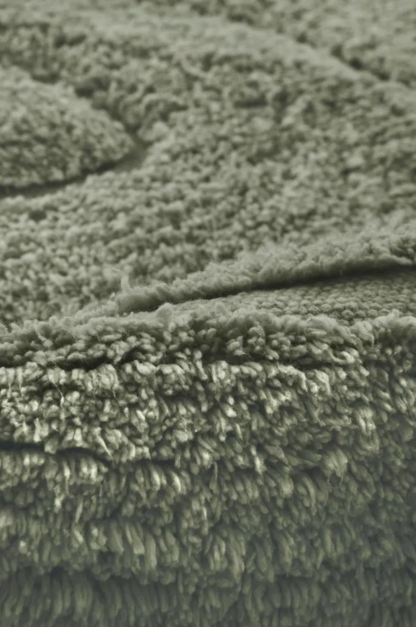 Tuftad bomullsmatta med tät lugg av mjuk och behaglig bomull. Det oregelbundet böljande och diskreta mönstret skapas av olika höjd på luggen. Lugghöjd 1 cm. Tjocklek 1,1 cm. 1660 g/m².