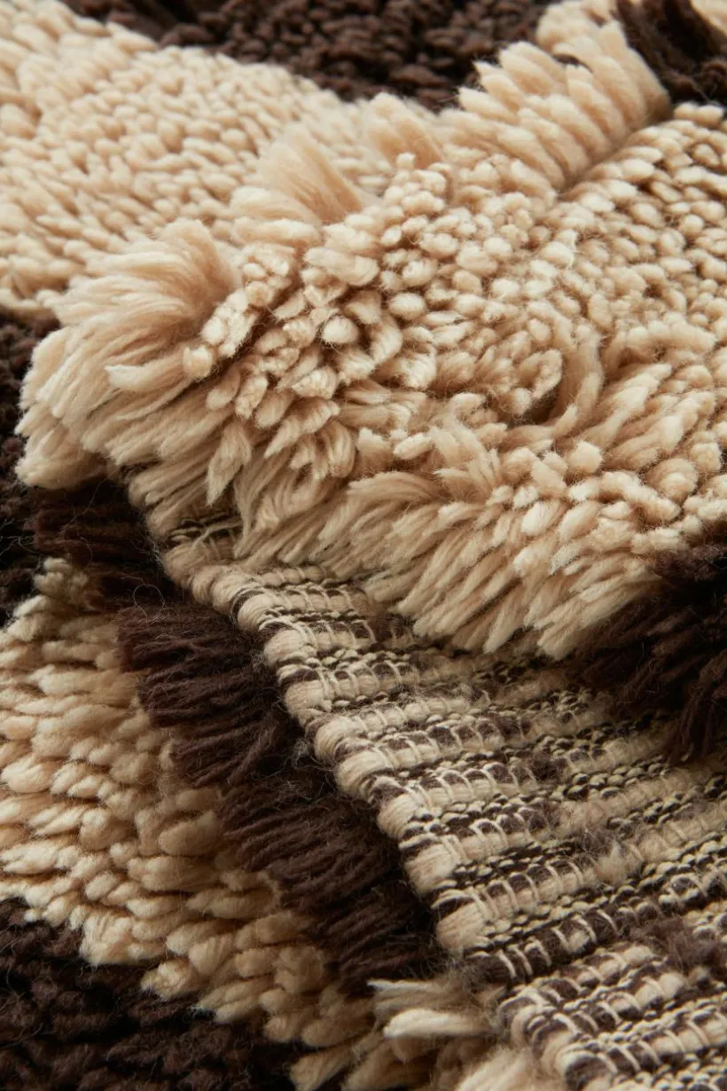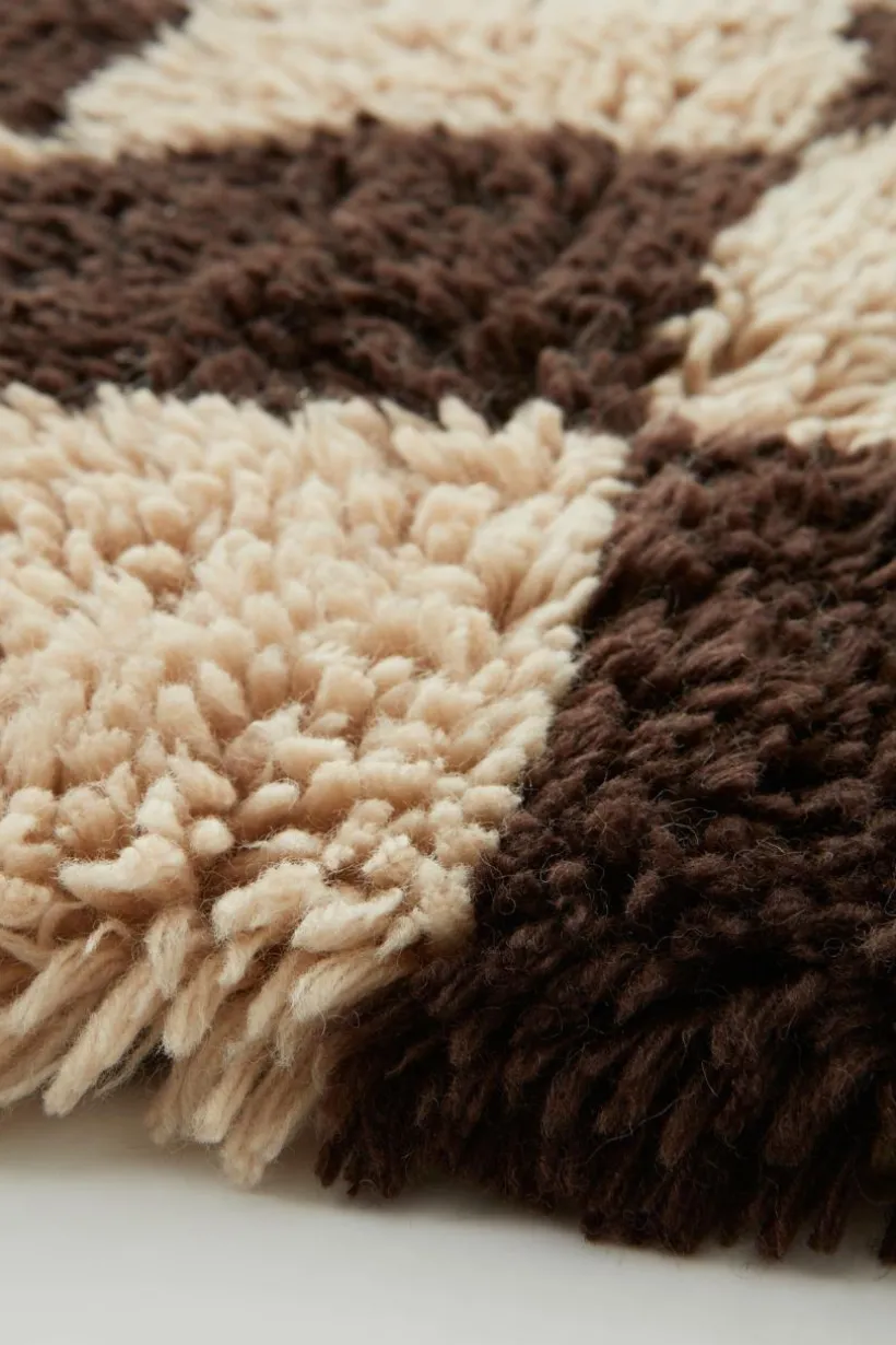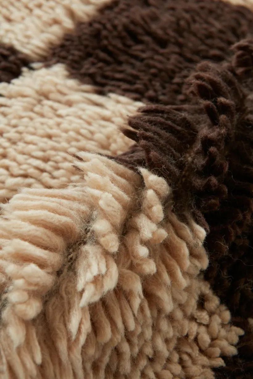 Handvävd ullmatta av 80% ull och 20% bomull. Mattan är schackrutig och har lång och tät lugg som är mjuk att sätta ned fötterna på. Ull är ett naturligt material som värmer på ett skönt sätt. Ull är dessutom ett praktiskt val då ullen är naturligt smutsavvisande. Det fina hantverket gör varje matta unik. Lugghöjd 4 cm, Tjocklek 4,5 cm. 3000 g/m².