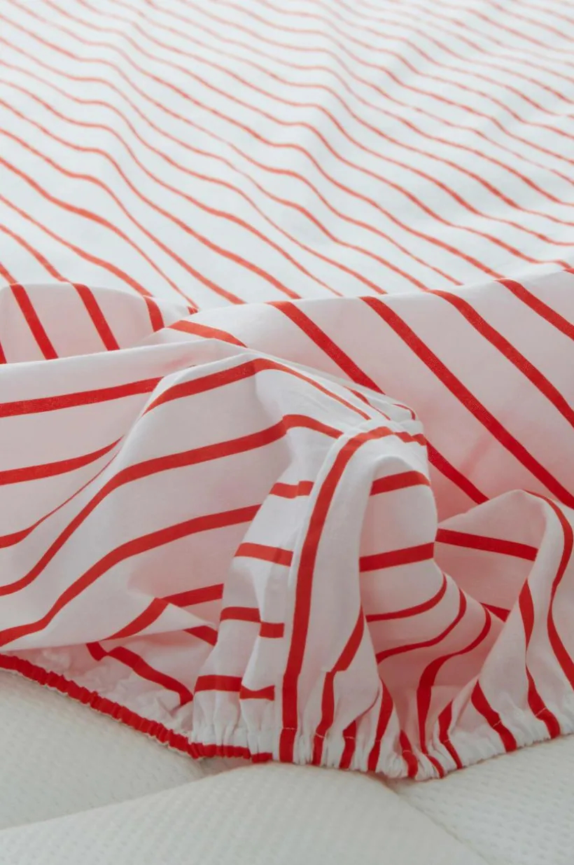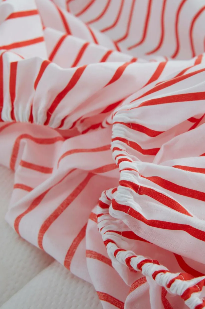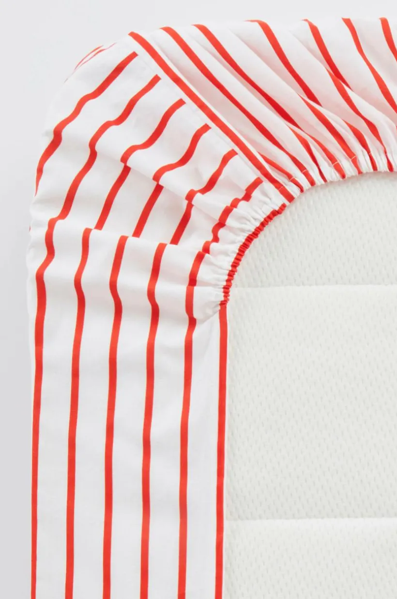 SIMA lakan i ekologisk bomull ger ditt barn en mjuk famn för en lugn nattsömn. Lakanet har skarpa, randiga tryck och hörnresårer som ger en säker och åtsittande passform för enkel bäddning. Perfekt för en mysig spjälsängsmiljö.