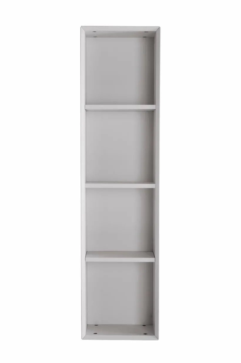 Hyllan har smakfullt fasade kanter framtill och denna hylla har fast hyllplan i mitten, de två andra hyllplanen är flyttbara. Hyllan monteras på väggen i den höjd du önskar det vilket ger ett stilrent och effektfullt resultat. Upphängningslist medföljer, skruvar och plugg ingår ej.