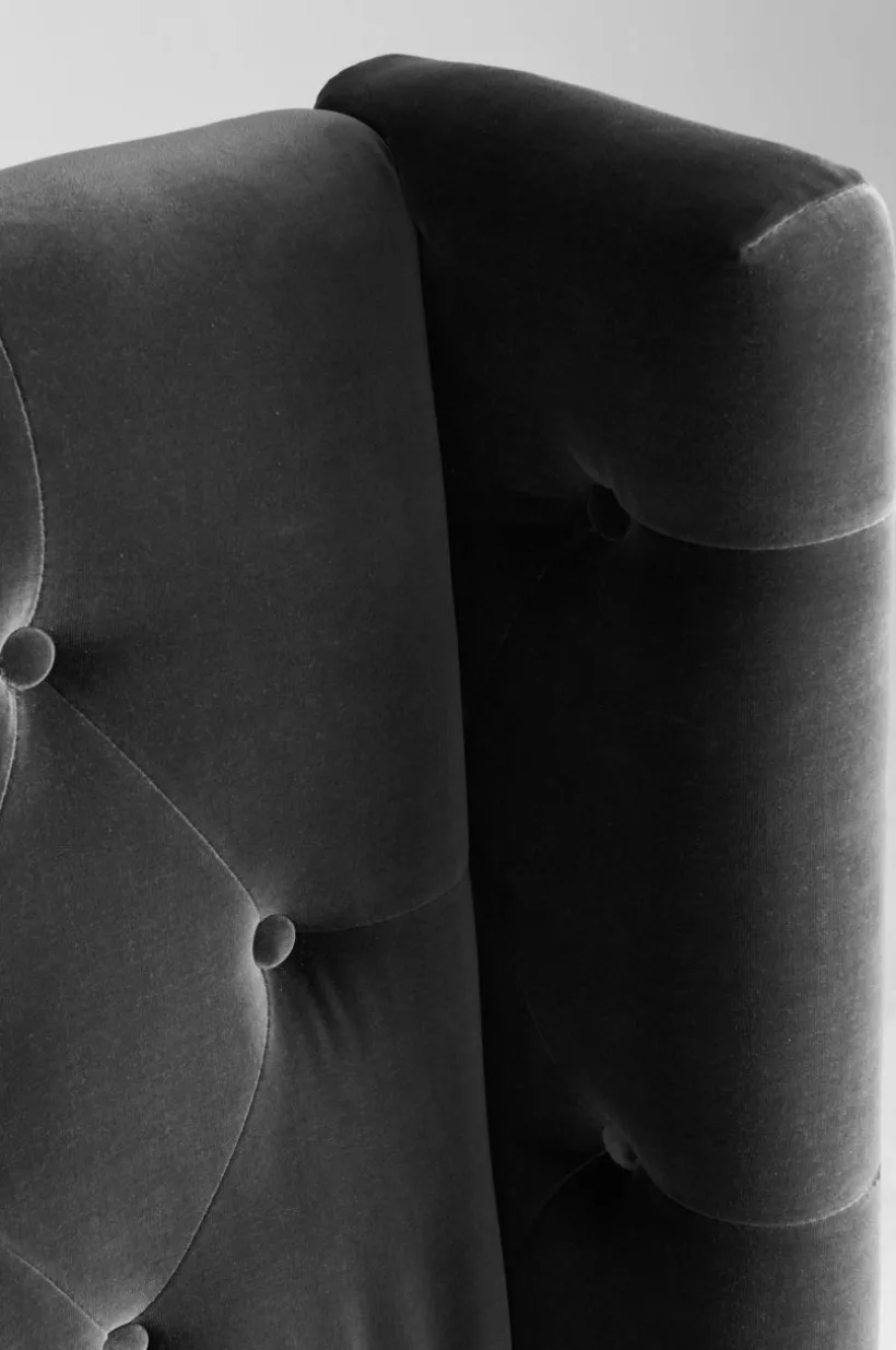 Fristående gavel klädd med sammet och djuphäftade klädda knappar. Går även att hänga upp på väggen. Du skapar en lyxig hotellkänsla hemma med en djuphäftad sänggavel med vingar. Allt i finaste sammet av bomullsmix.