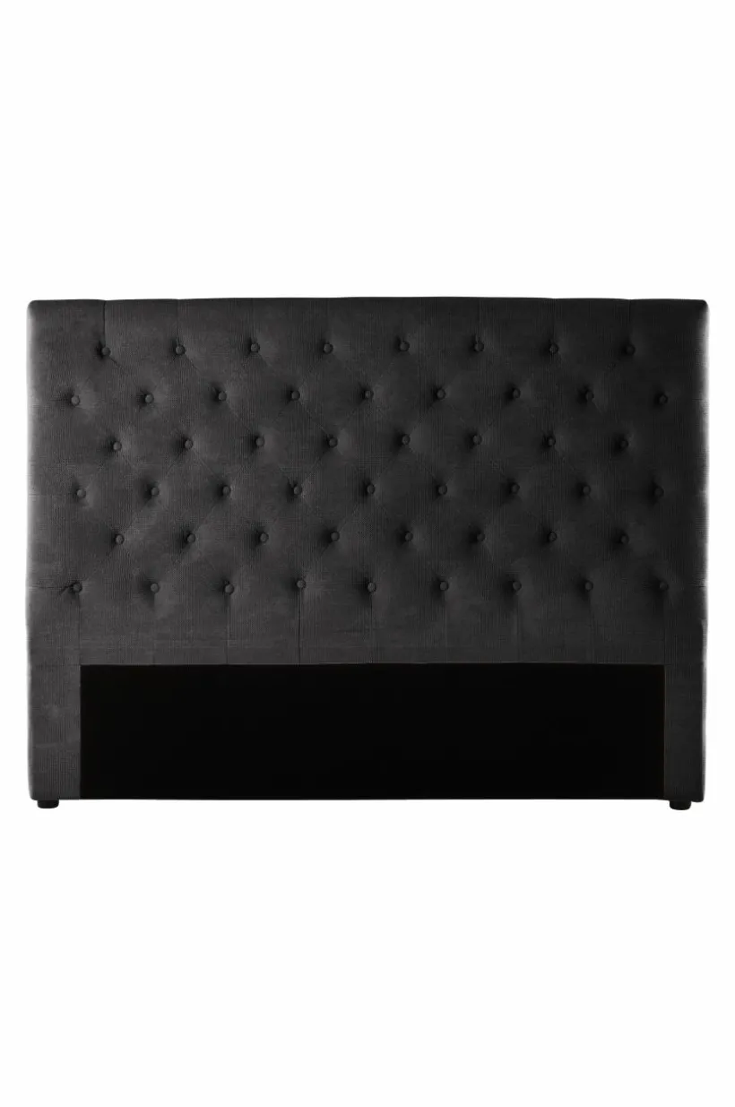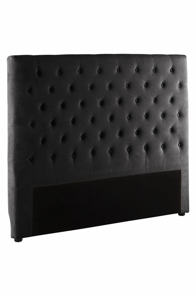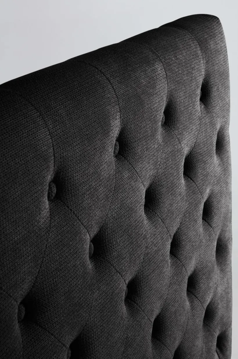 Fristående sänggavel klädd med ett enfärgat tyg som är mjukt och behagligt. De djuphäftade, klädda knapparna ger en lyxig känsla. Stommen är av plywood och massivt trä som vadderats med skumgummifyllning. Väggfäste ingår, en ramp på baksidan gör det enkelt att hänga upp gaveln om du vill det. Du kan också klämma fast sänggaveln mellan sängen och väggen. Viss monterings krävs. Monteringsanvisning medföljer.