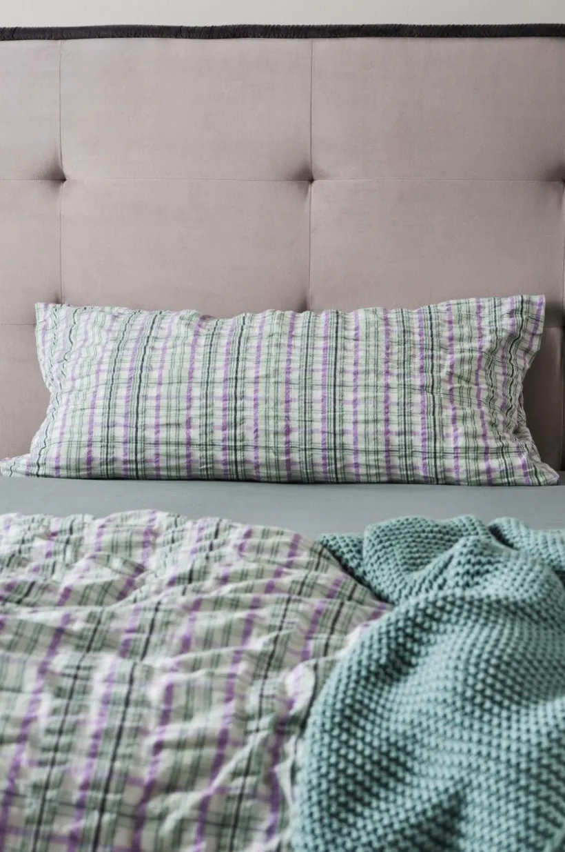 Tips/råd: Den fräscha serien SKYE finns i flera delar så du kan bädda enhetligt med rutig bäckebölja.