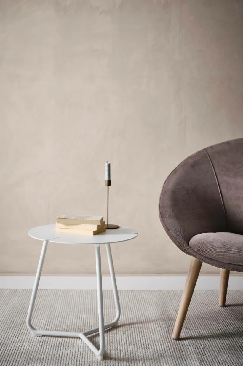 Sidobord av pulverlackerad aluminium med matt yta. Aluminium är ett praktiskt material som har låg vikt och det rostar inte, du kan låta det stå utomhus. Den matta pulverlacken är behaglig utan att reflektera solljuset.