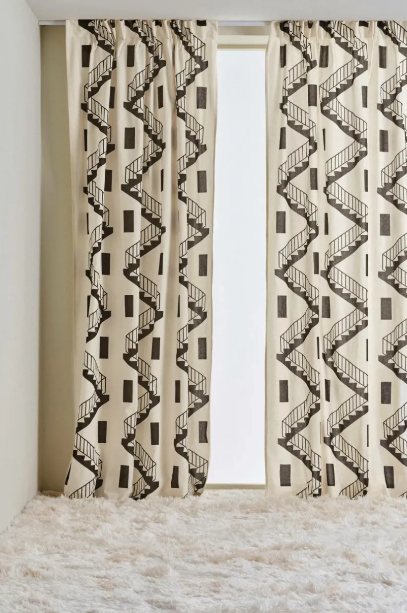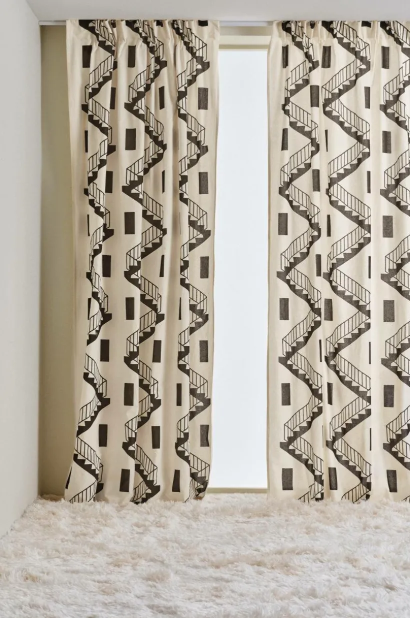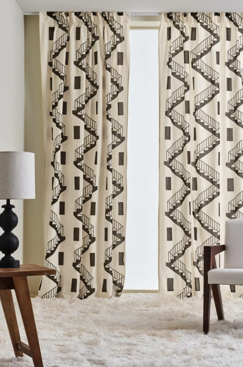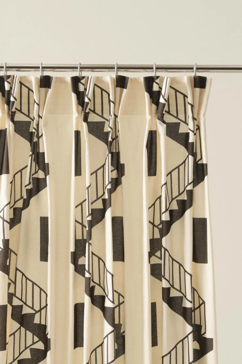 Två gardinlängder i unik design av Mikael Selin. Gardinerna är av bomull och STAIRS är ett grafiskt mönster med flera nivåer. Det för tankarna till ett klassiskt sicksack-mönster och här vill vi hissa detaljrikedom i ett klassiskt maner. Passar perfekt för att rama in fönster. Oavsett vilken våning i hemmet de hamnar på.