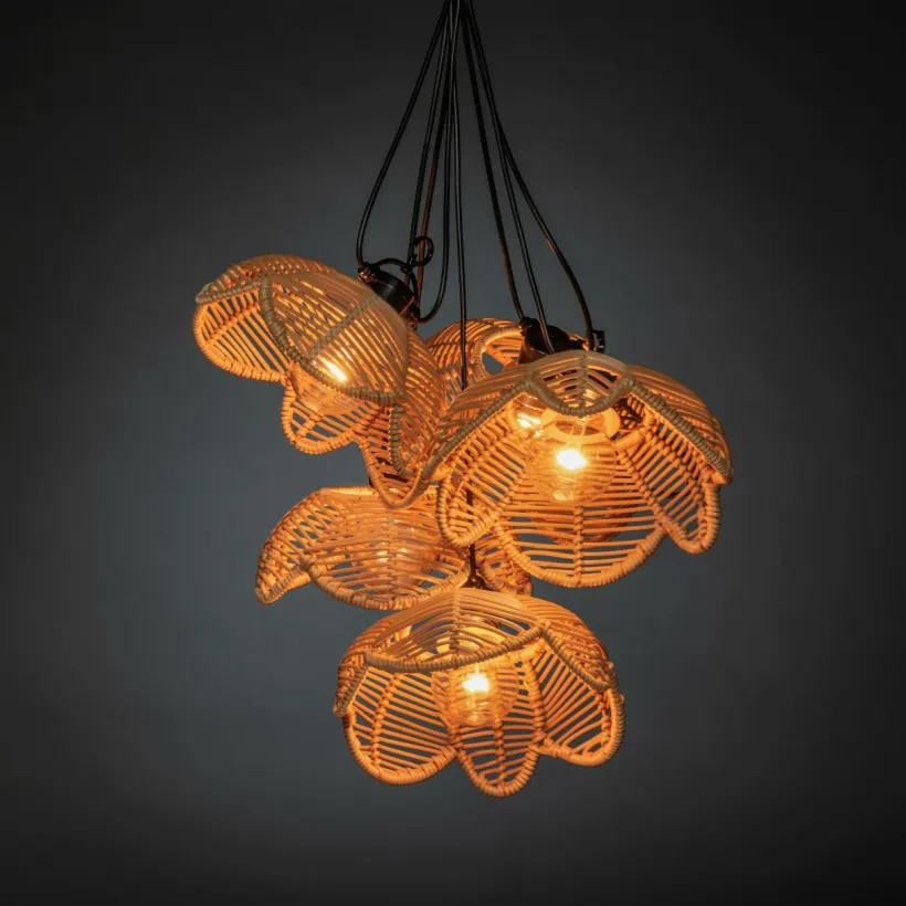 Modern partyslinga med 10 klotformade lampor, med en meter mellan varje lampa, samt dekorativ rottingskärm. Lamporna har utbytbar led, inbyggd dimmer och en 10 meter lång anslutningskabel vilket gör slingan lättplacerad. Det går att koppla totalt 3 tilläggsslingor vilket ger en total längd på 40 meter.