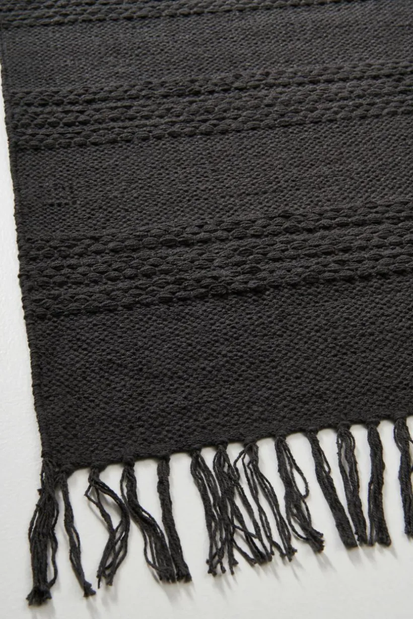 Enfärgad matta av bomull med vävd strukturrand ton-i-ton och fransar längs kortsidorna. En klassisk bomullsmatta som passar lika fint i köket som i barnkammaren, hallen eller tvättstugan. TANYA blir en härlig färgklick och rummet får en ny utstrålning. Franslängd 8 cm. Tjocklek 5 mm.
