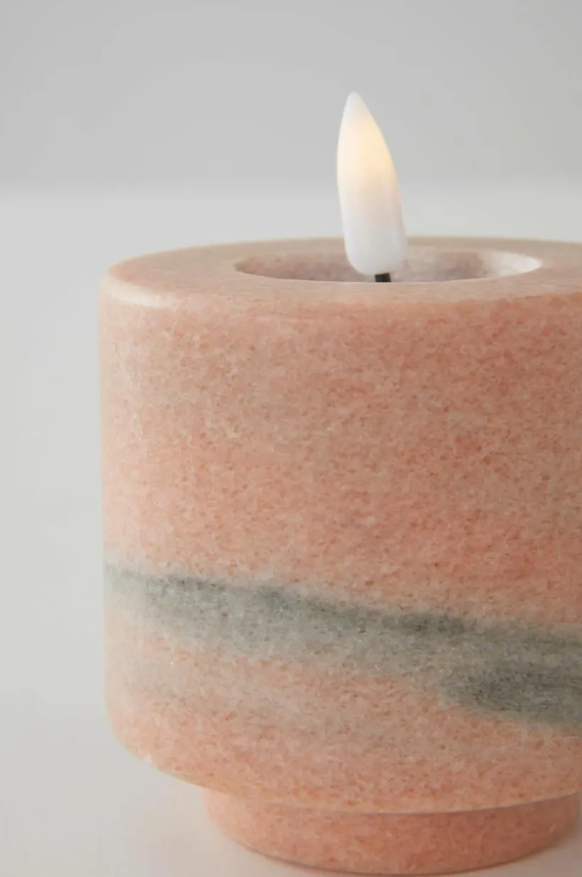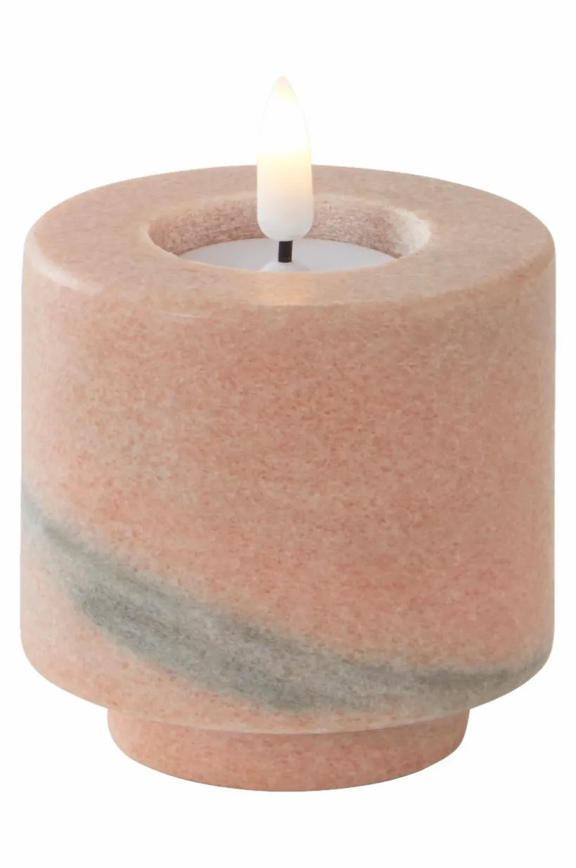 Ljusstake i avskalad och enkel modell av marmor med fina skiftningar i stenen som beror på bergartens sammansättning. Marmor är en natursten som ger ljusstaken sin karaktär och varje ljusstake är unik. Ljus medföljer ej.