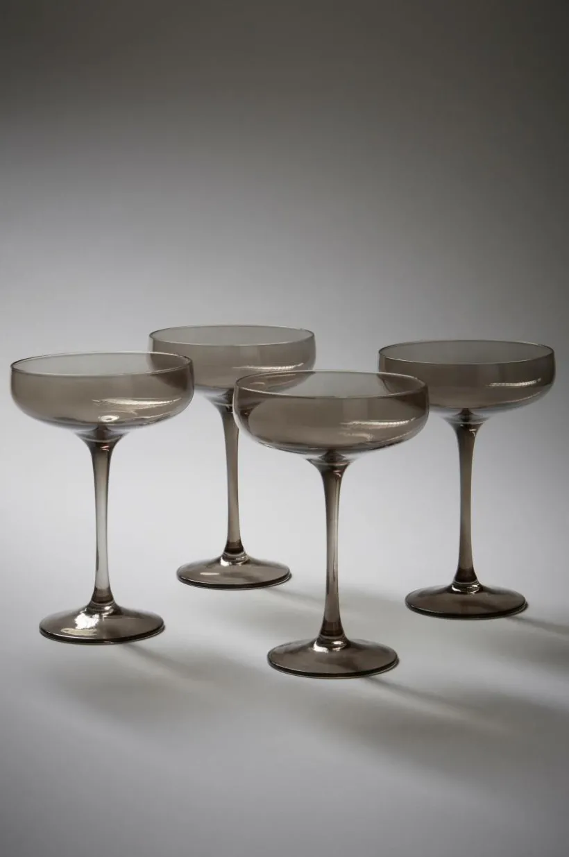 4-pack cocktailglas av rökfärgat glas som ger drycken en aptitlig inramning. De smäckra glasen med mjuka linjer har tunn, hög och vacker fot. Dessa glas passar också utmärkt att servera champagne i. I serien VANNA finns fler glas som matchar fint när du dukar middagsbordet för dina gäster.