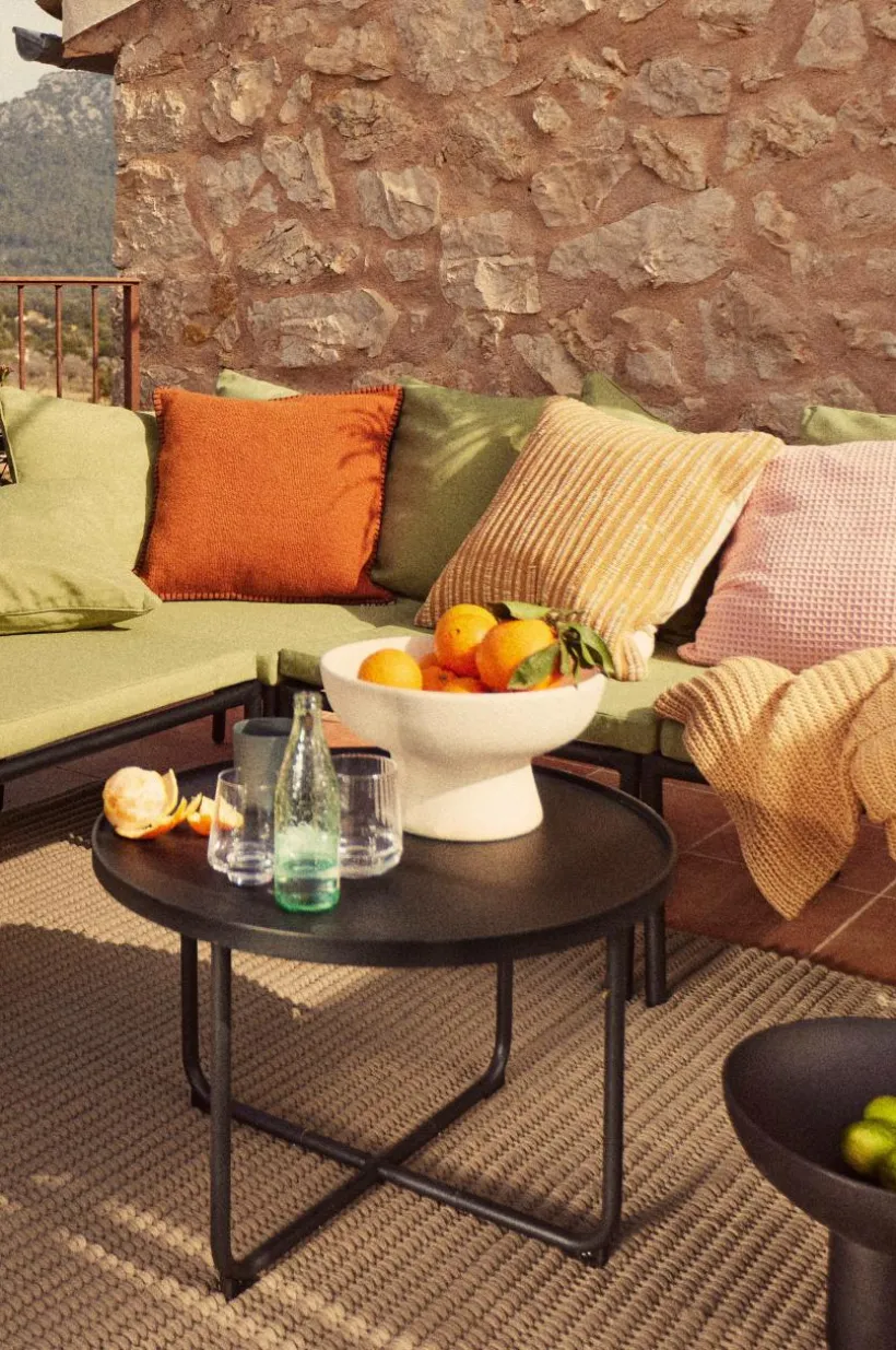 1-pack kuddfodral av lite grövre bomullstyg med fin effekt tack vare oregelbunden tjocklek på garnet vid vävningen. Kudden har en handsydd, dekorativ söm runt kanten. Baksidan är enfärgad i en matchande nyans. Dold dragkedja i nederkant.