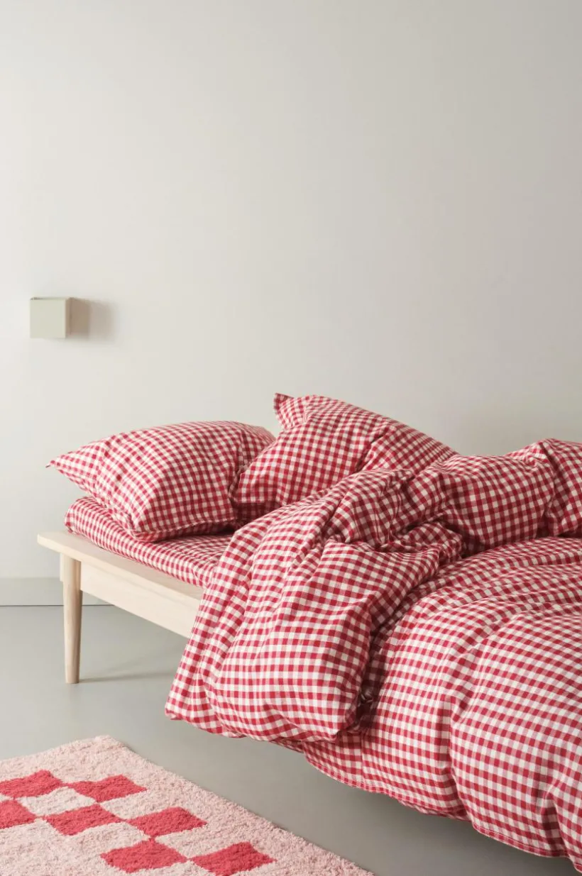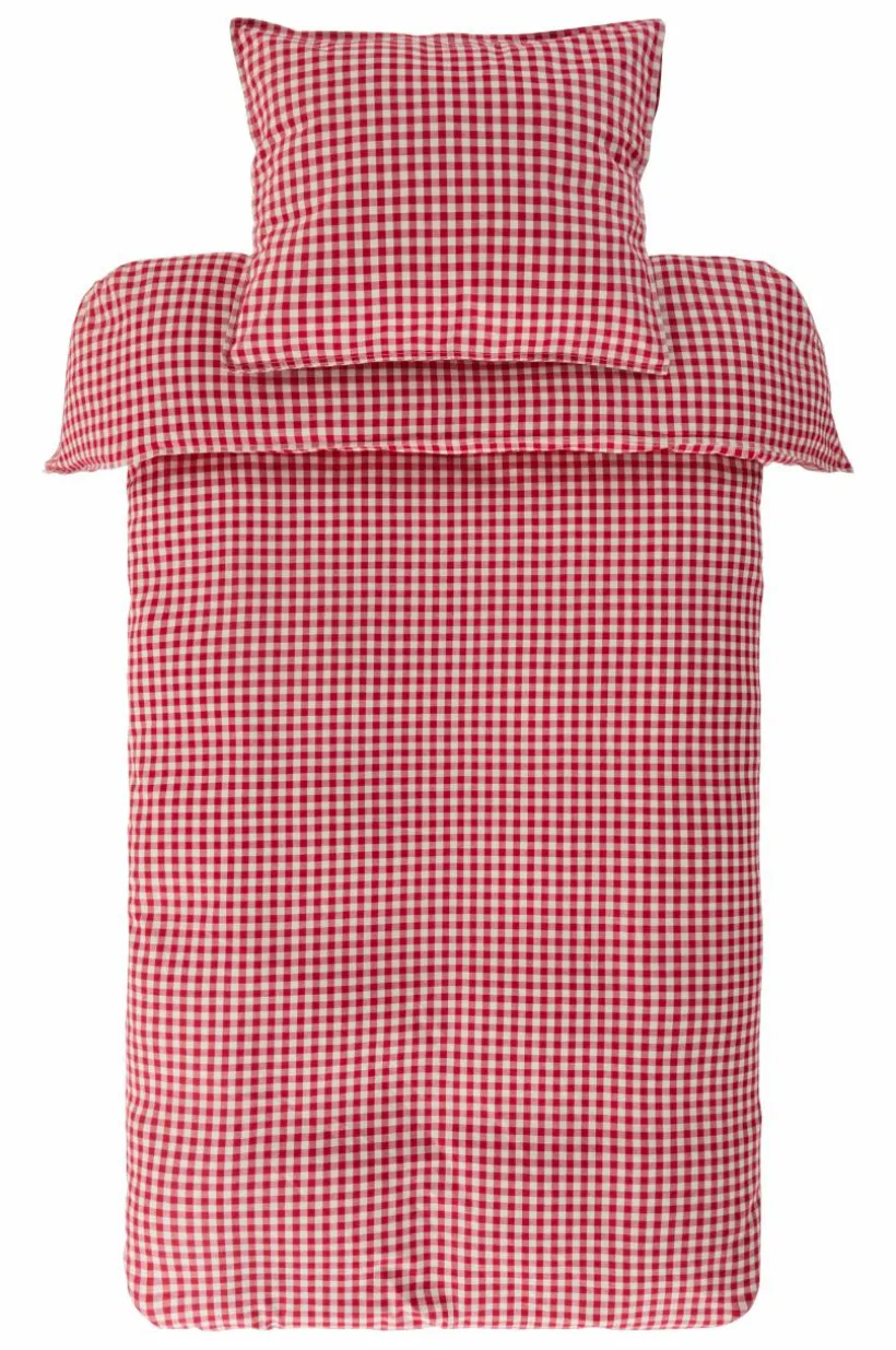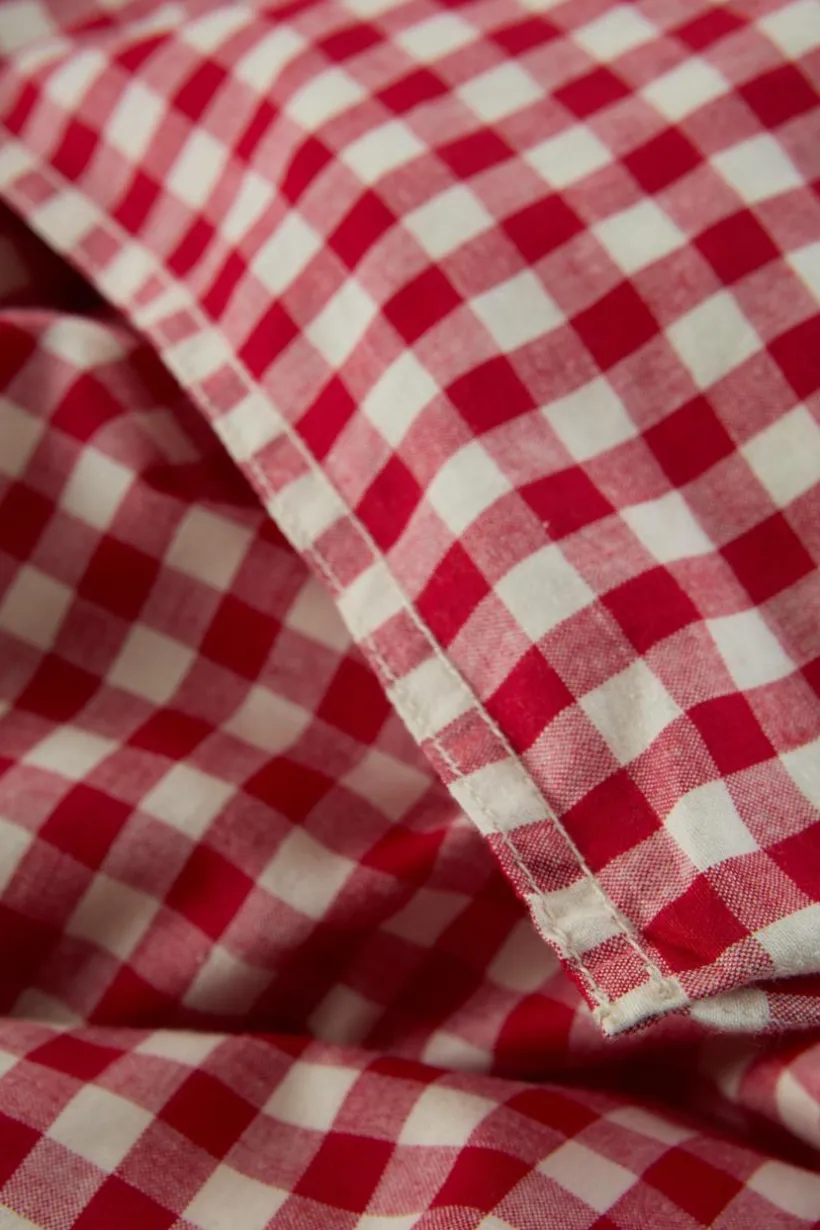 Rutvävt påslakanset med ett påslakan och ett örngott i härlig, ekologisk bomullskvalité. Tyget är tvättat för att få en mjukare känsla och bomull känns svalt och skönt mot huden. De garnfärgade rutorna går i klassiska färger, lätta att matcha med annat. Öppning i övre hörnen på påslakanet, som underlättar att trä påslakanet över täcket. Trådtäthet på 118 tc. (Trådtätheten talar om antalet trådar, thread counts, per kvadrattum i ett tyg. Ju högre trådtäthet desto högre kvalité.)