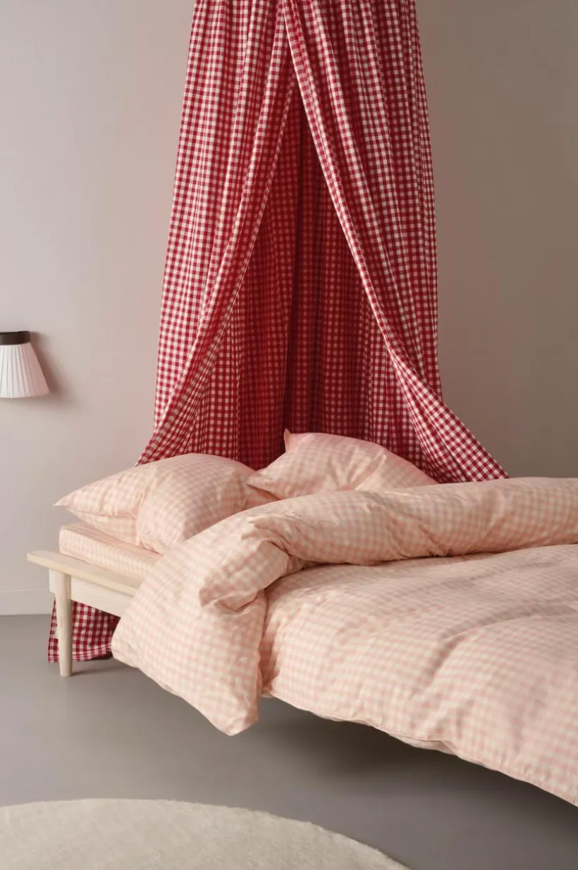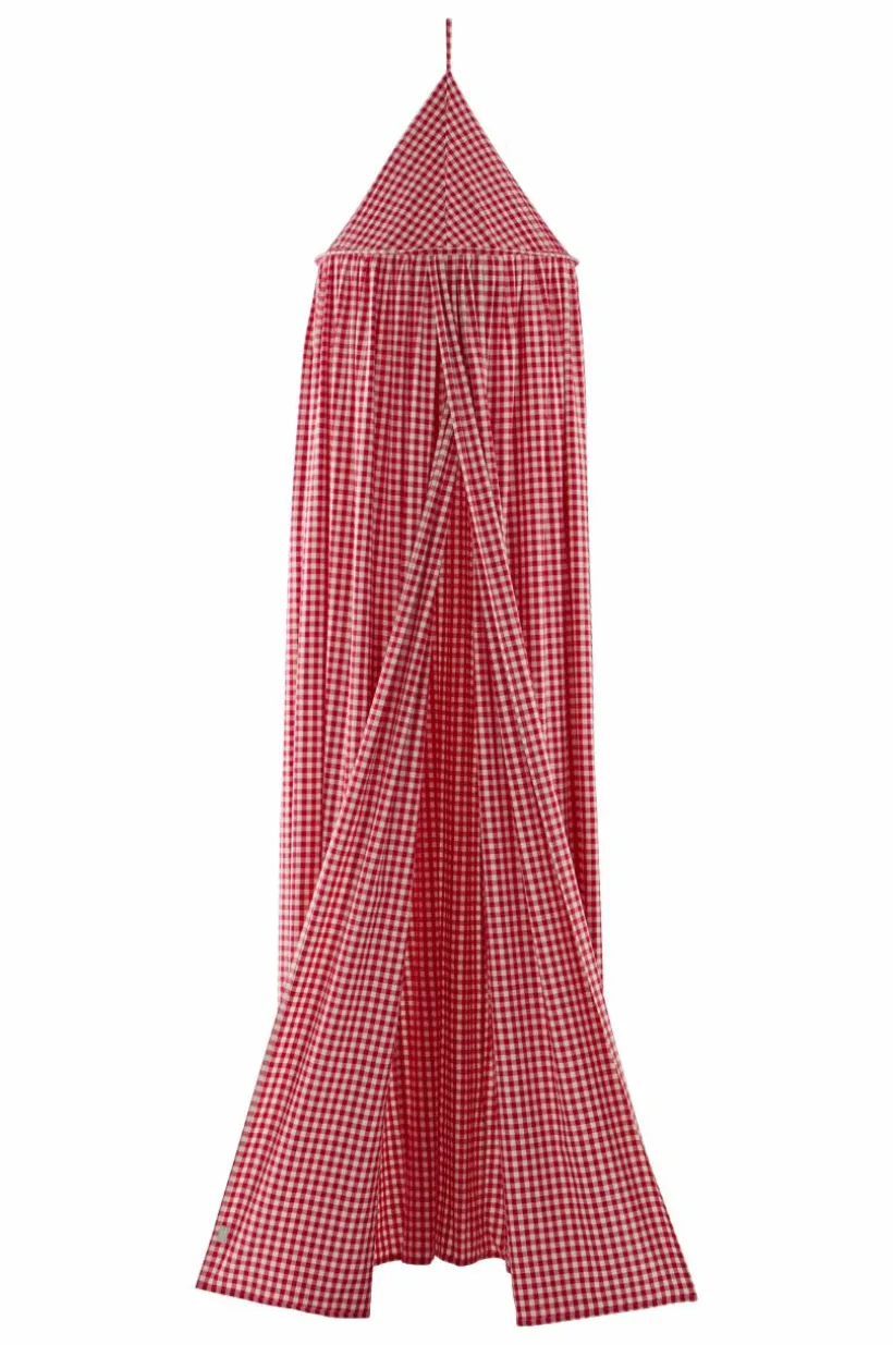Sänghimmel i mjuk och följsam rutvävd bomull. Förtvättad för en mjuk känsla och garnfärgad för att bibehålla det livfulla gingham-mönstret. Denna sänghimmel är rund upptill och öppen framtill. En sänghimmel över barnens säng skapar en ombonad atmosfär, det kan vara lite extra mysigt att gå och lägga sig.