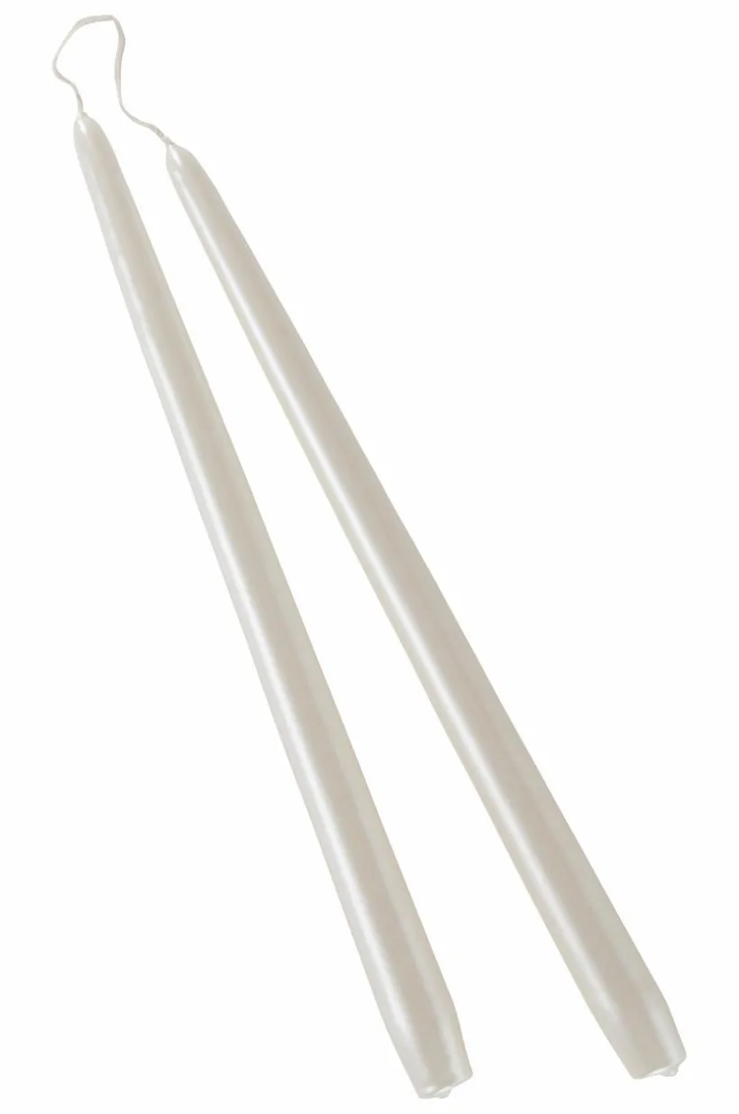 2-pack antikljus av stearin och paraffin som sedan doppats i färg med pärlemorfinish. Ljusen är handstöpta och tillverkade i Sverige. Att stöpa ljus för hand är en gammal och fin, svensk tradition och att tända levande ljus skapar mysig atmosfär. Stearinet innehåller inte palmolja. Paraffinet har fina brinnegenskaper och kvalitetsmärkningen RAL visar att paraffinet brinner med lite sot och rök.