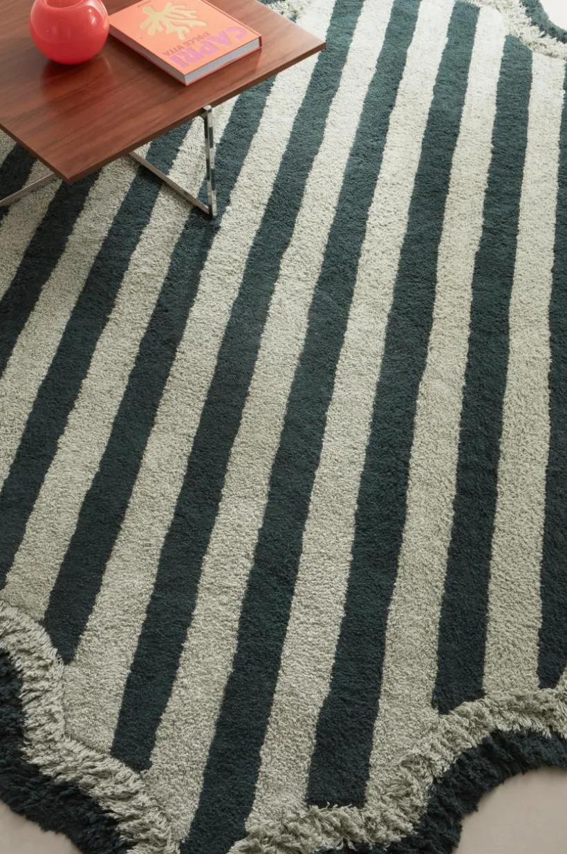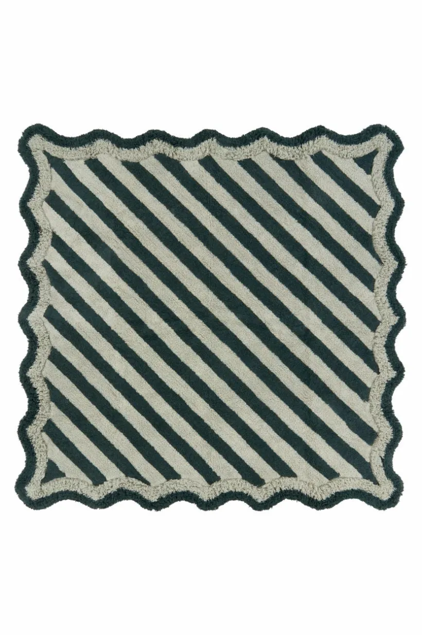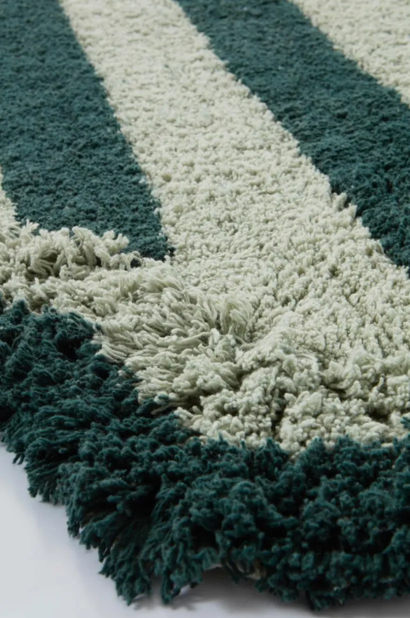 Bomullsmattan VIOLETA ger charm till alla rum. Den mjuka tuftade strukturen, det randiga mönstret och den speciella formen ger en livfull känsla. Perfekt för sovrum och vardagsrum. Skapa en mysig och elegant atmosfär utan ansträngning.