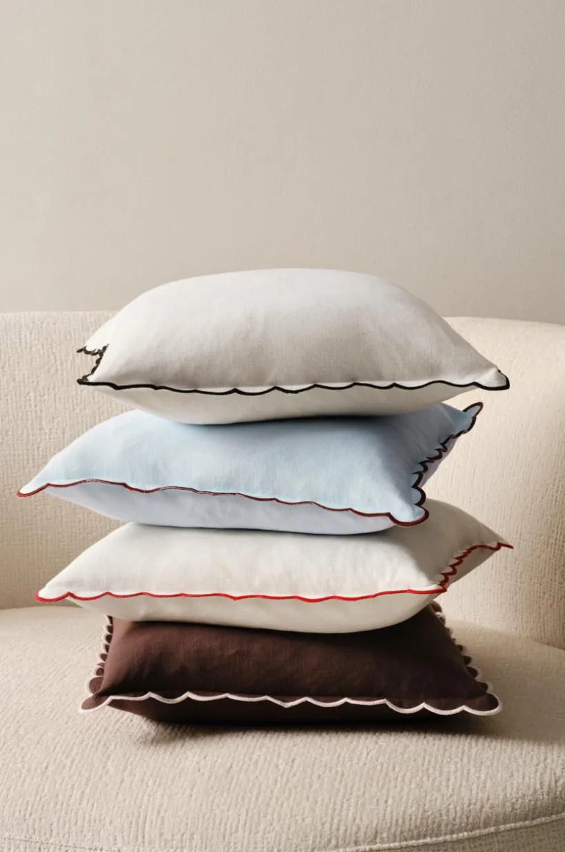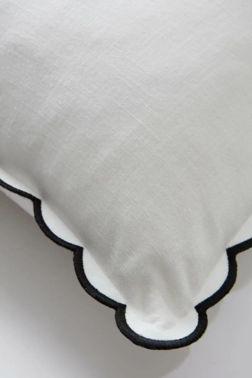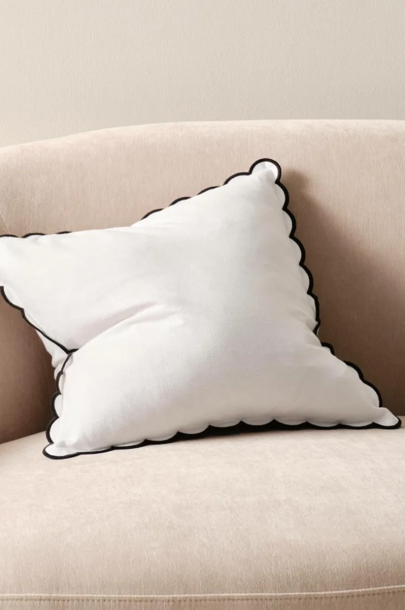 Kuddfodralet VIVIAN är tillverkat av bomull med en oregelbunden struktur som uppnås genom varierad garntjocklek. Tyget är enfärgat med en vågformad kant och overlocksömmar som ger ett snyggt utseende. Dragkedja för enkel öppning och stängning.