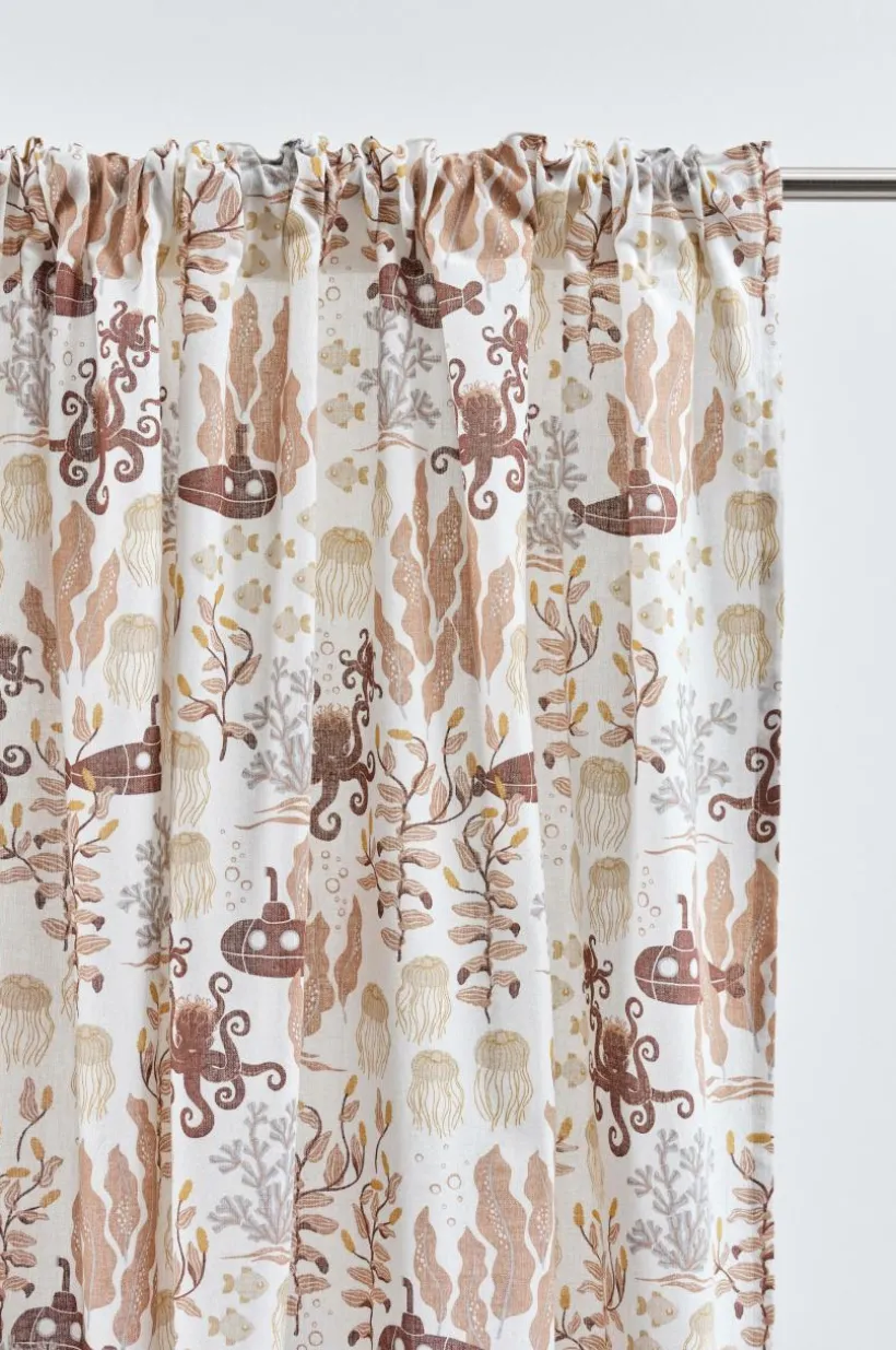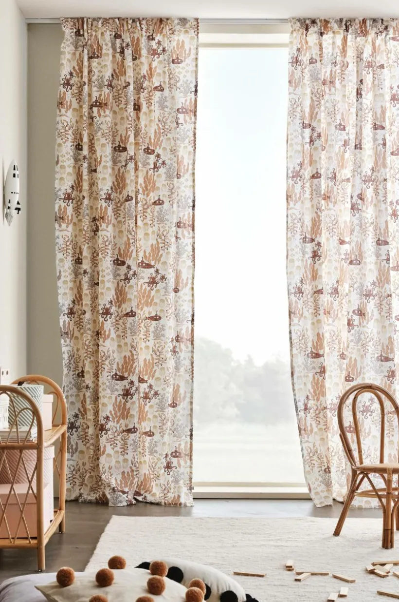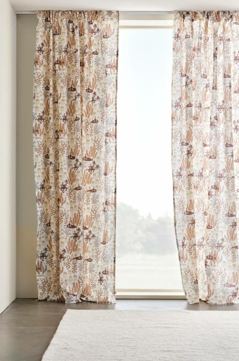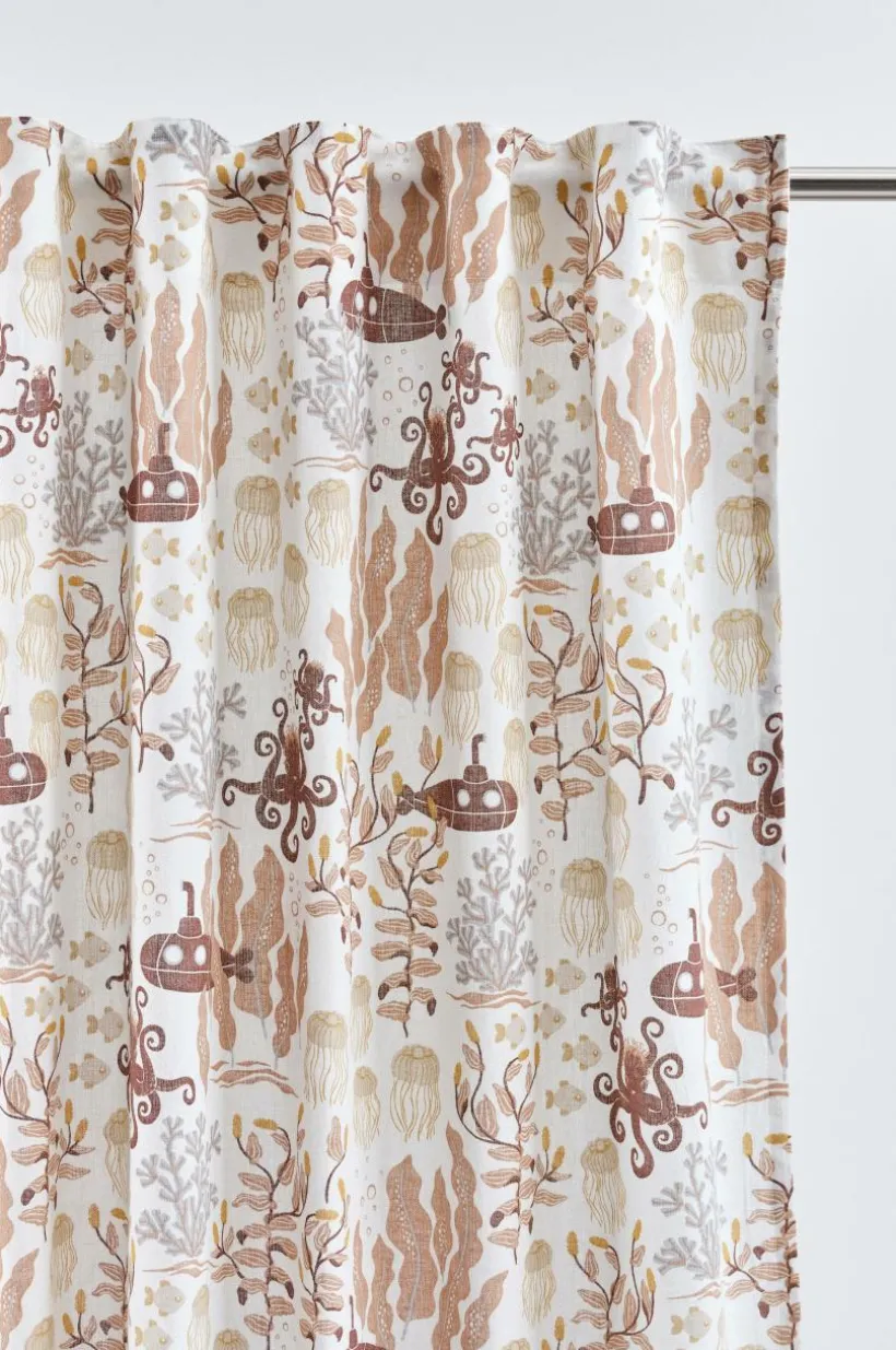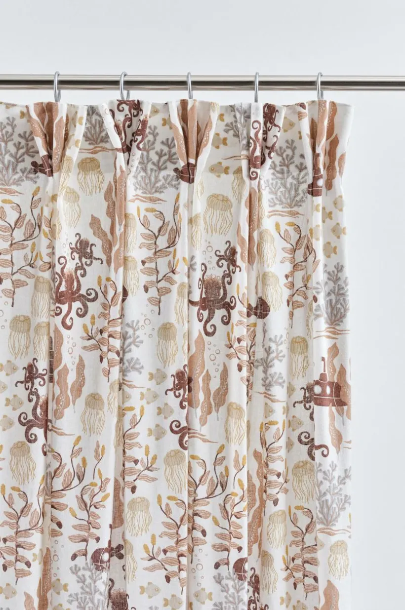 Två gardinlängder i fin kvalité av linne och bomull med tryckt mönster designat av Maria Carlberg. Det härliga mönstret har inspirerats av ett sagoliv under vattenytan och färgerna är lugna och harmoniska. WATERS är en mysig kollektion som ger utrymme för fantasin. Längderna har påsytt multifunktionsband och kan hängas upp med fingerkrokar, kanal samt dold hälla.