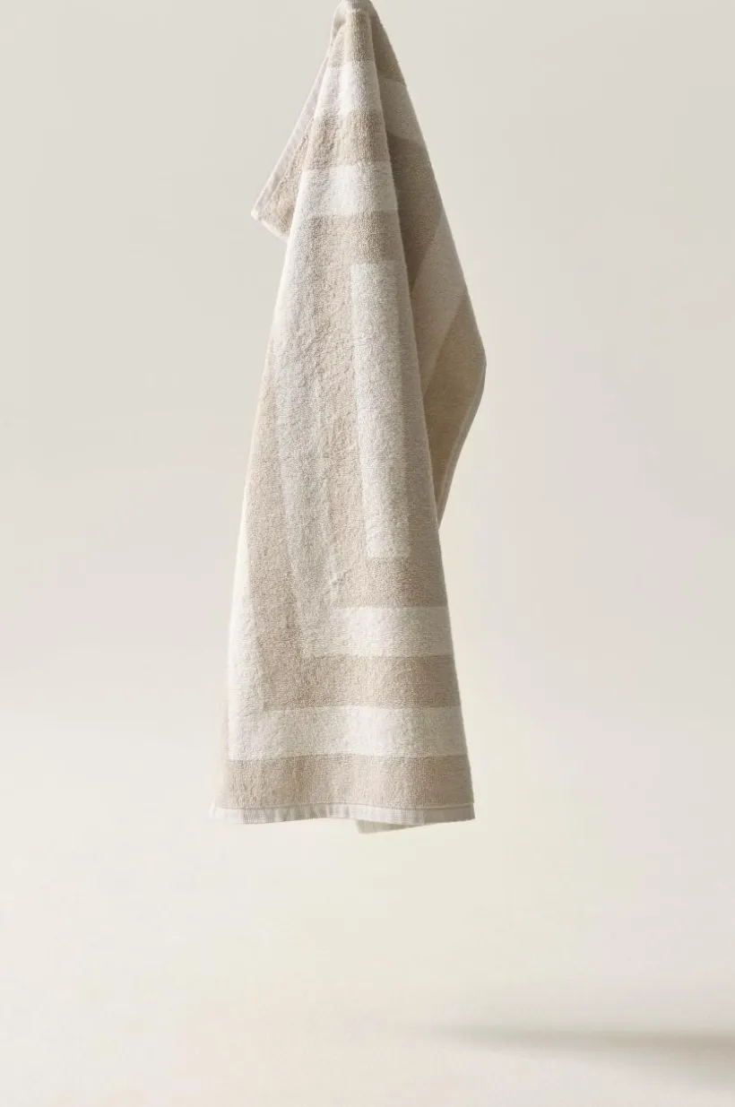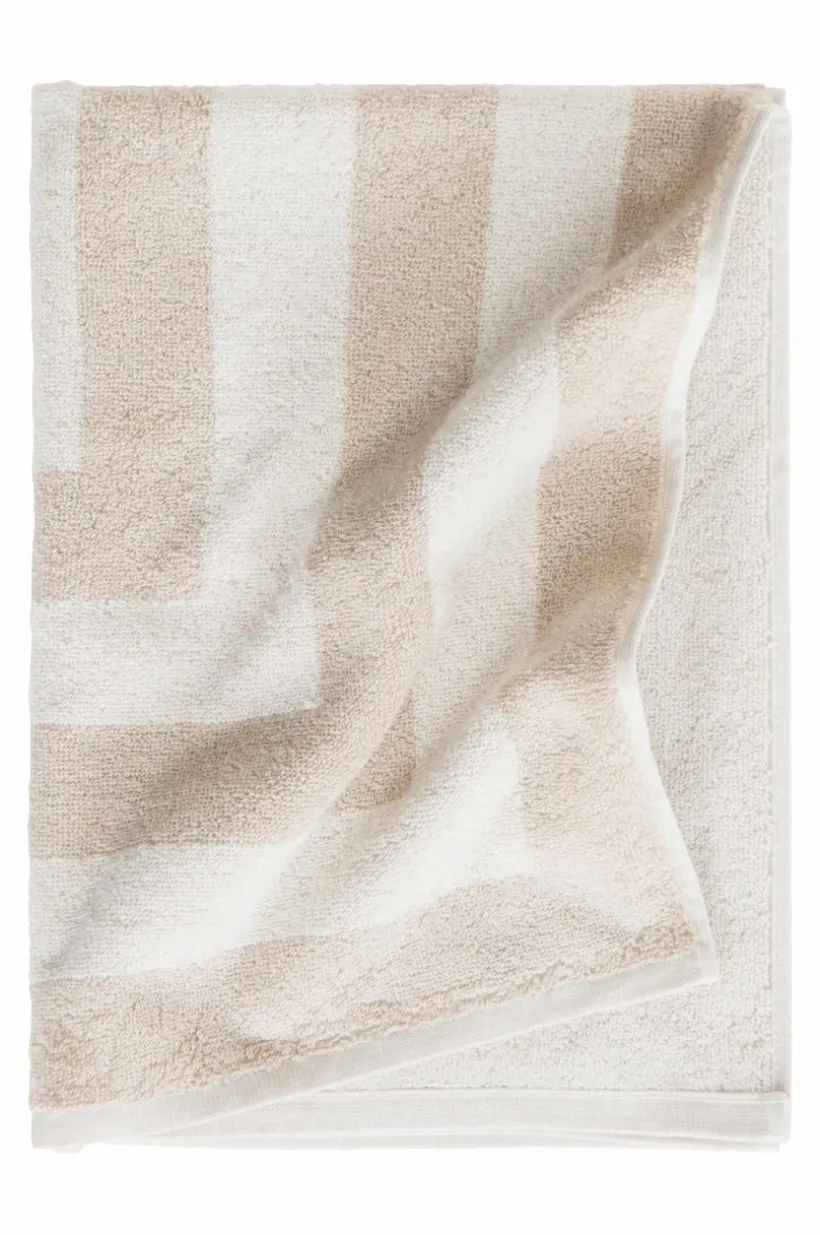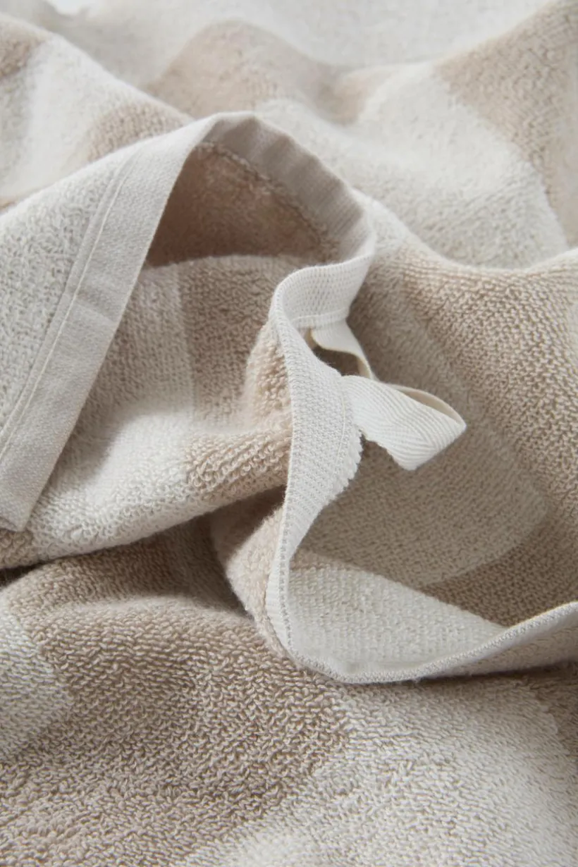 WILLIAM frottéhandduk ger din badrumsinredning en lyxig känsla, vävd av dubbelt garn för en mjuk, mysig känsla. Handdukarna har ett unikt rutmönster som skapar en randig effekt som framhävs när de hängs upp.