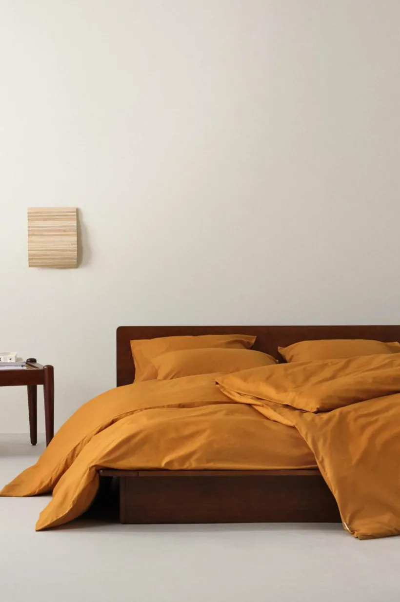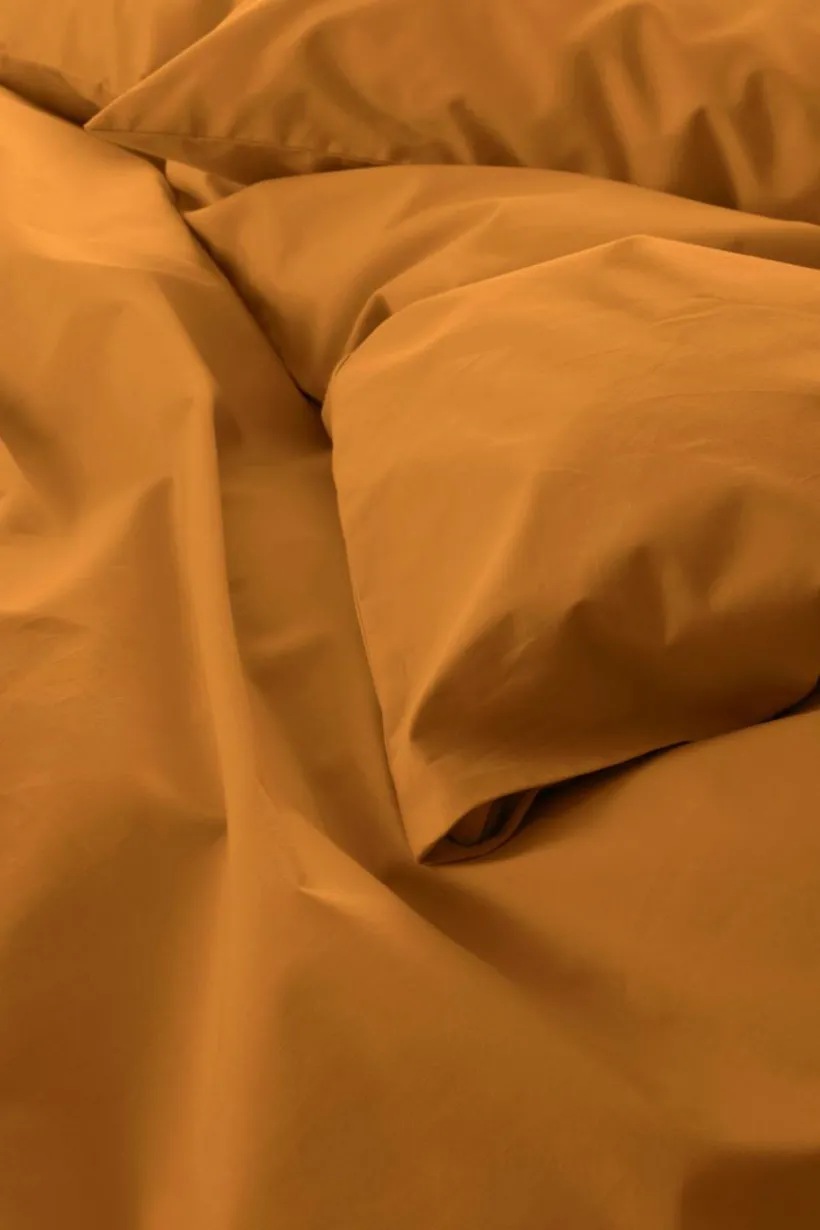 Enfärgat påslakanset i två delar, ett påslakan och ett örngott i underbar percale av ekologisk bomull. Percale är ett extra mjukt och behagligt tyg som vävts med tunna, fina bomullstrådar. Öppning i övre hörnen på påslakanet, som underlättar att trä påslakanet över täcket. Trådtäthet på 200 tc. (Trådtätheten talar om antalet trådar, thread counts, per kvadrattum i ett tyg. Ju högre trådtäthet desto högre kvalité.)