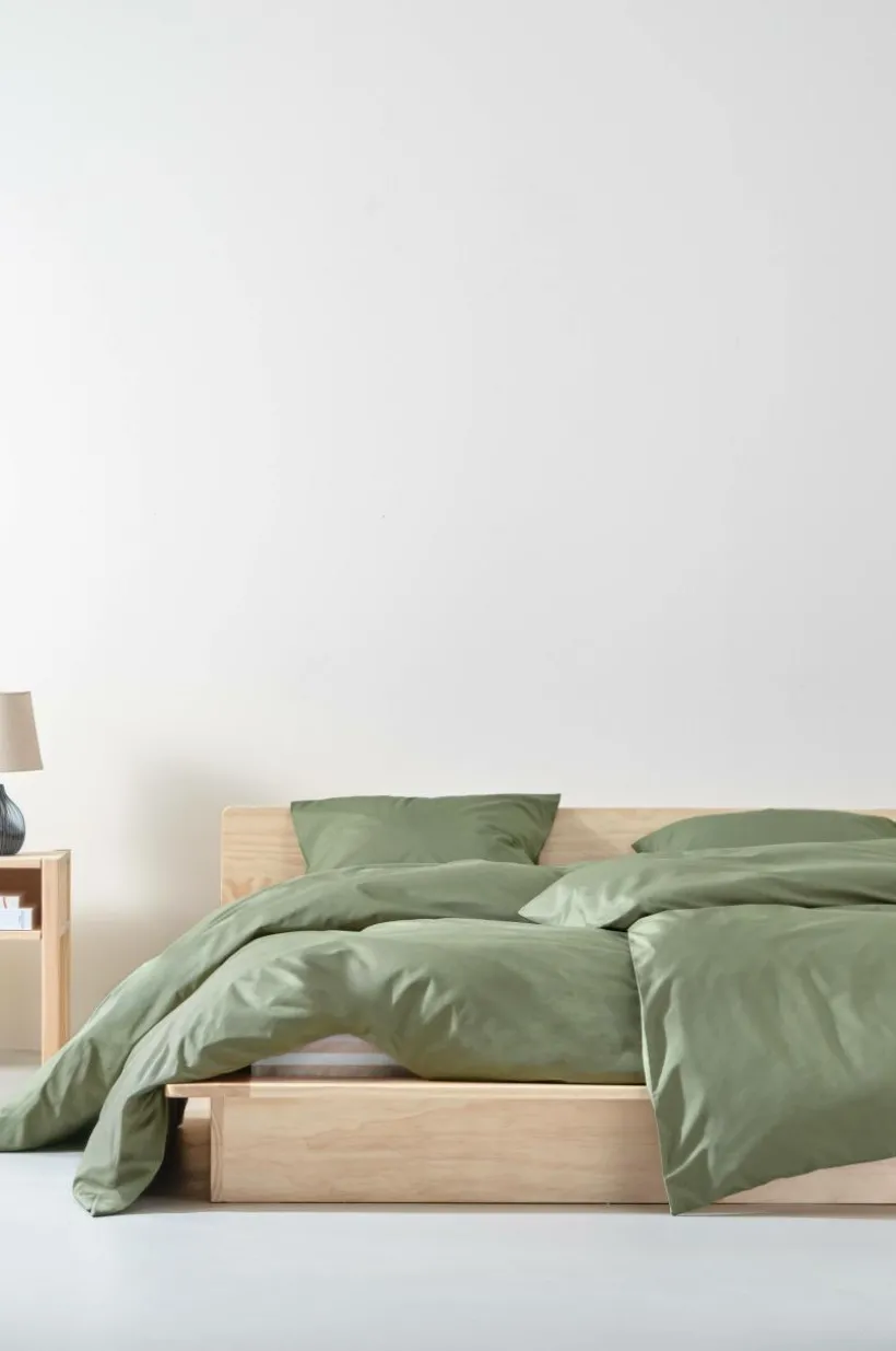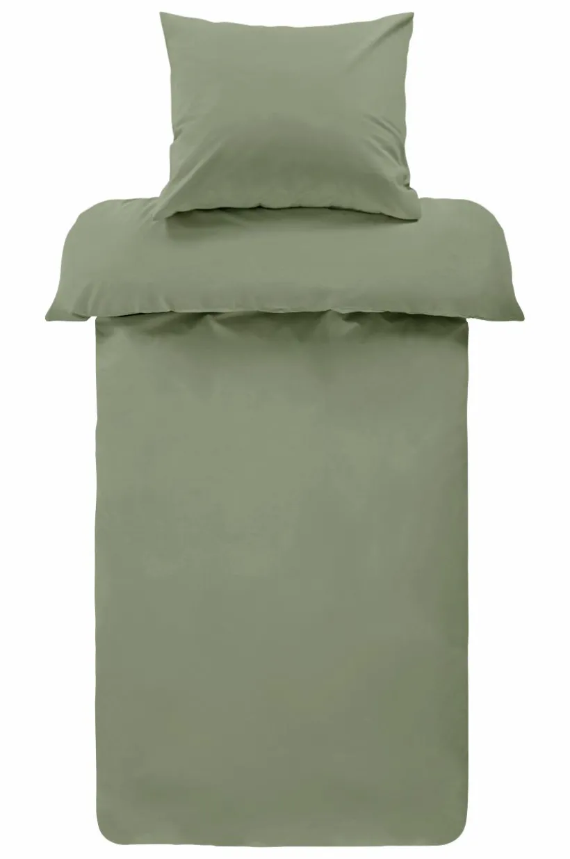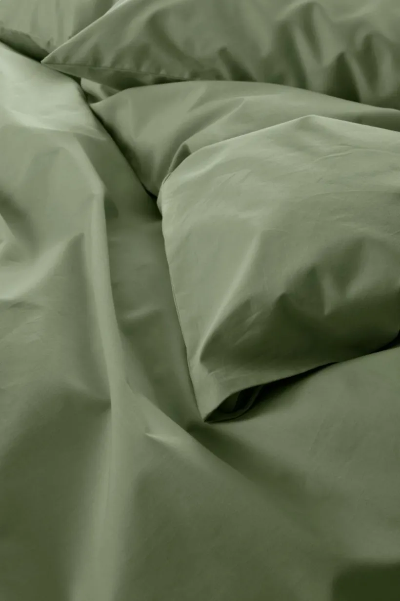 Enfärgat påslakanset i två delar, ett påslakan och ett örngott i underbar percale av ekologisk bomull. Percale är ett extra mjukt och behagligt tyg som vävts med tunna, fina bomullstrådar. Öppning i övre hörnen på påslakanet, som underlättar att trä påslakanet över täcket. Trådtäthet på 200 tc. (Trådtätheten talar om antalet trådar, thread counts, per kvadrattum i ett tyg. Ju högre trådtäthet desto högre kvalité.)
