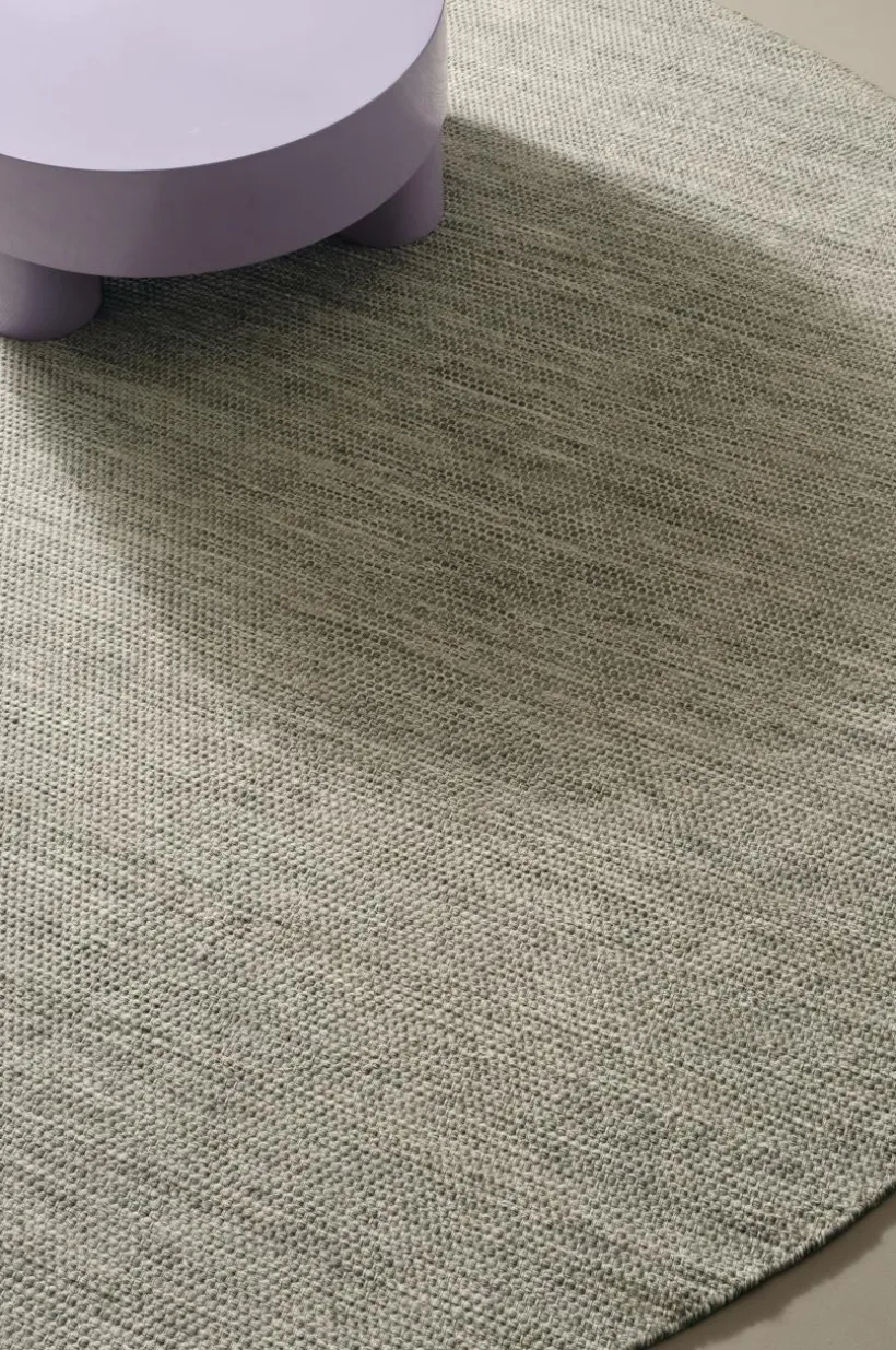 Handgjord matta i fin ull i kombination med bomull. Den runda mattan är slätvävd med en lite strävare känsla och har en stilren design som passar in i många olika stilar och trender. En diskret rand längs kortsidan fångar blicken och mattan blir en lugn och balanserad bas i ditt rum. Ullen i mattan kommer från gårdar där fåren lever ett liv som är naturligt för arten och i samklang med naturen.